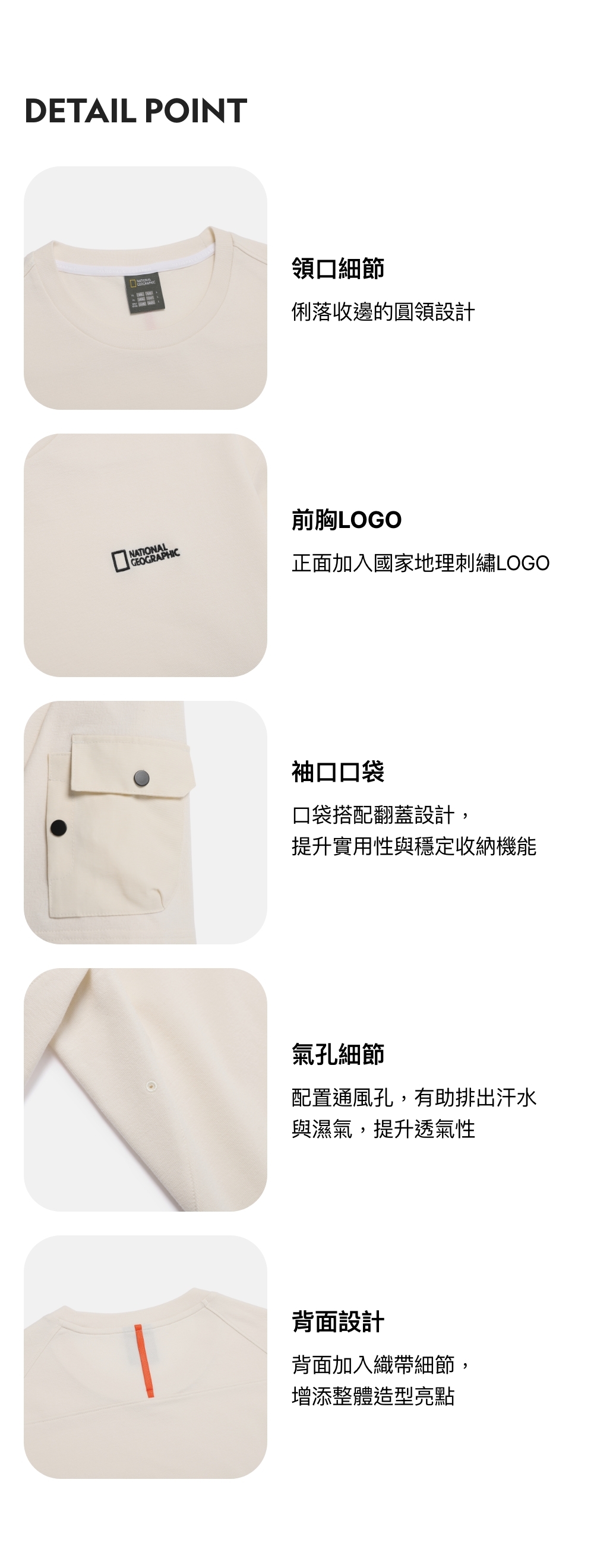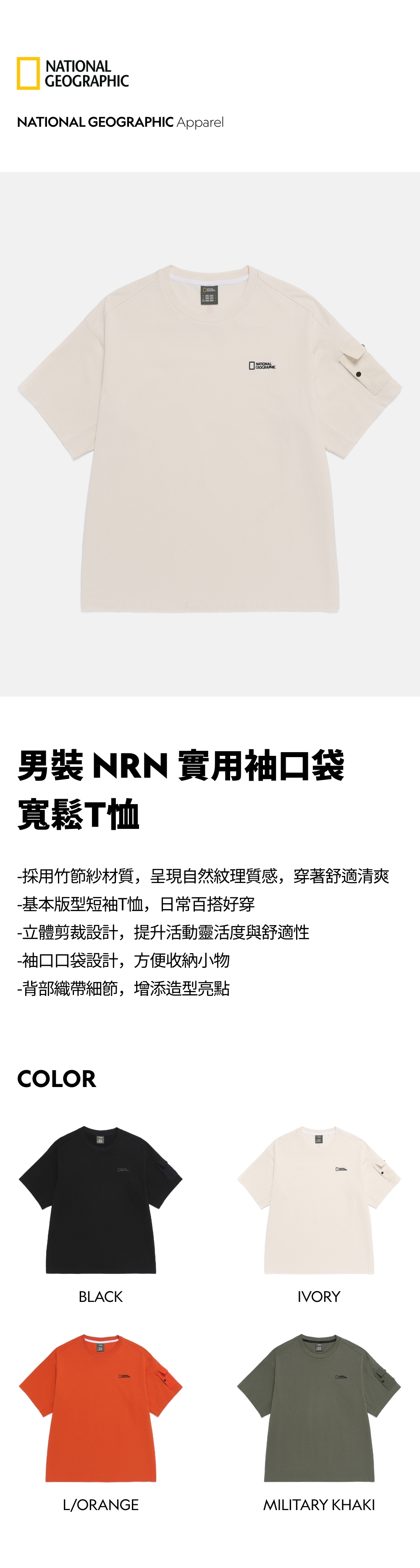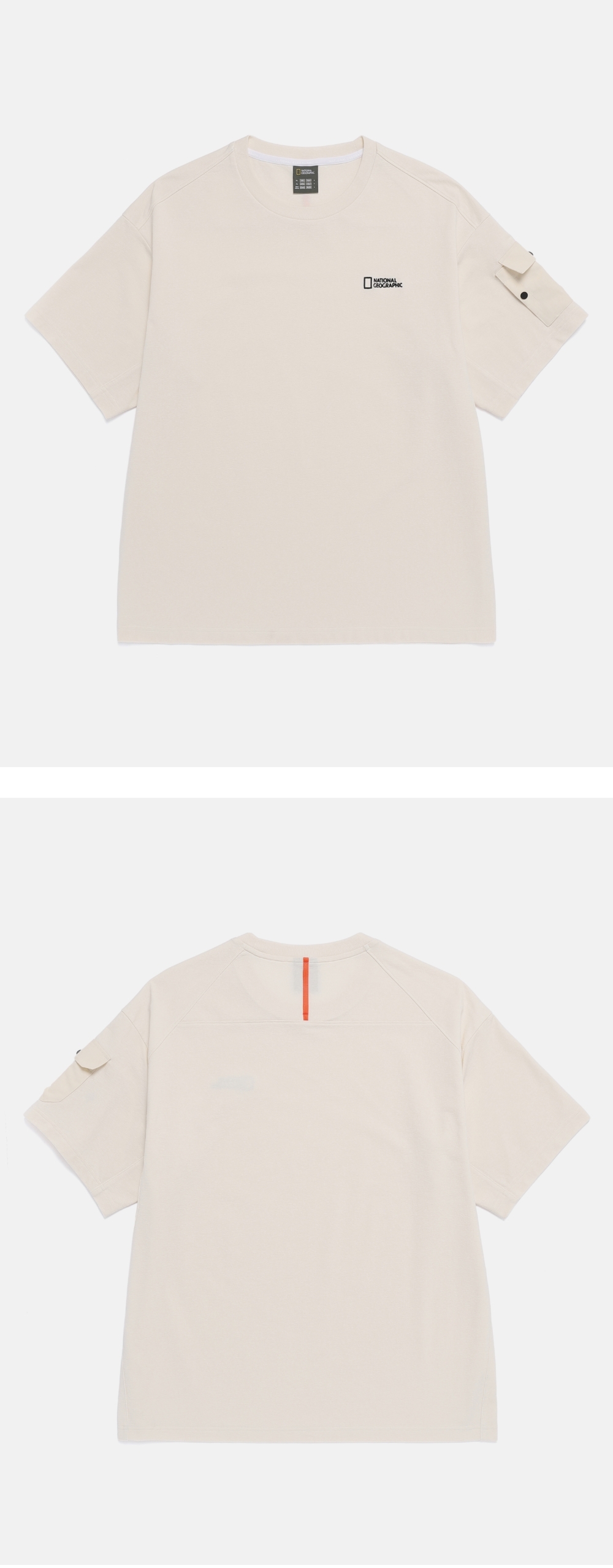 男裝 NRN 實用袖口袋寬鬆T恤 - 米白色