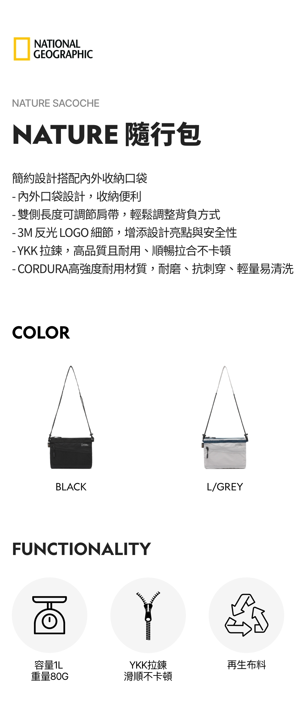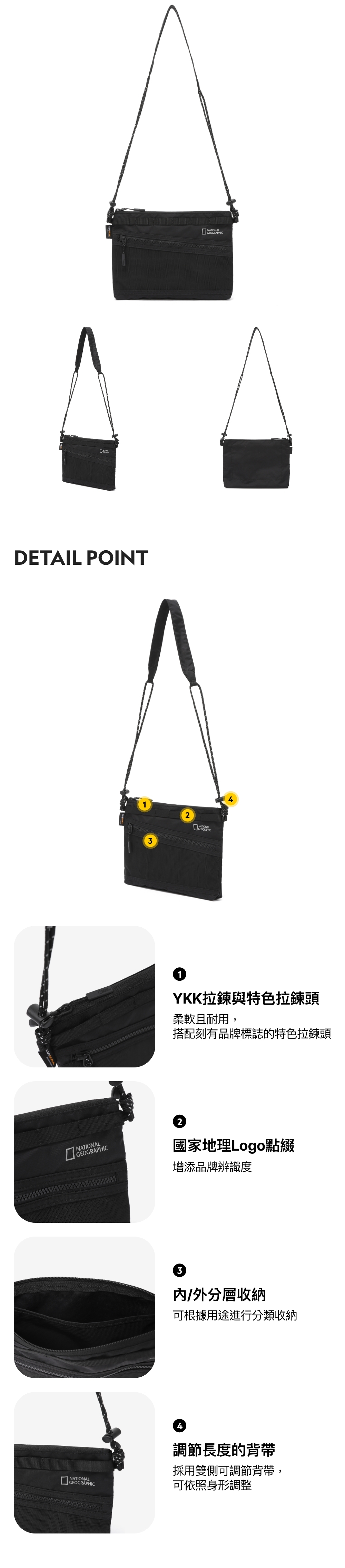 - 雙側長度可調節肩帶,輕鬆調整背負方式