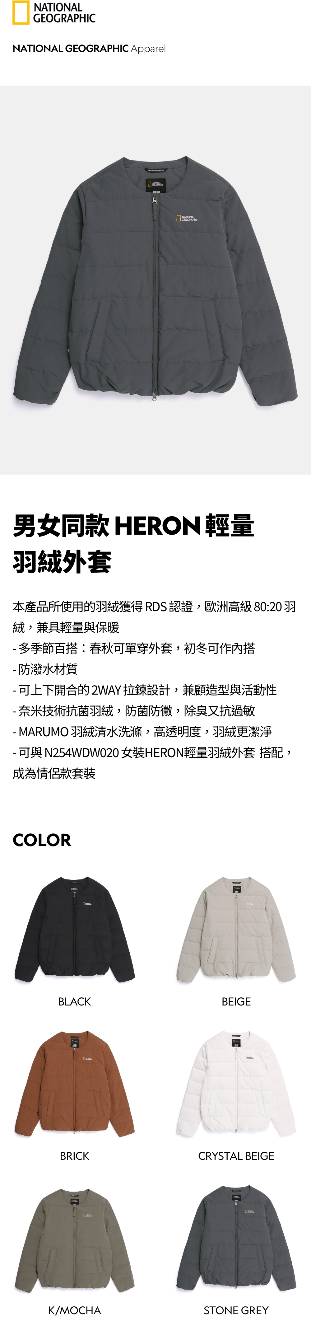 - 可與 N254WDW020 女裝HERON輕量羽絨外套 搭配,成為情侶款套裝