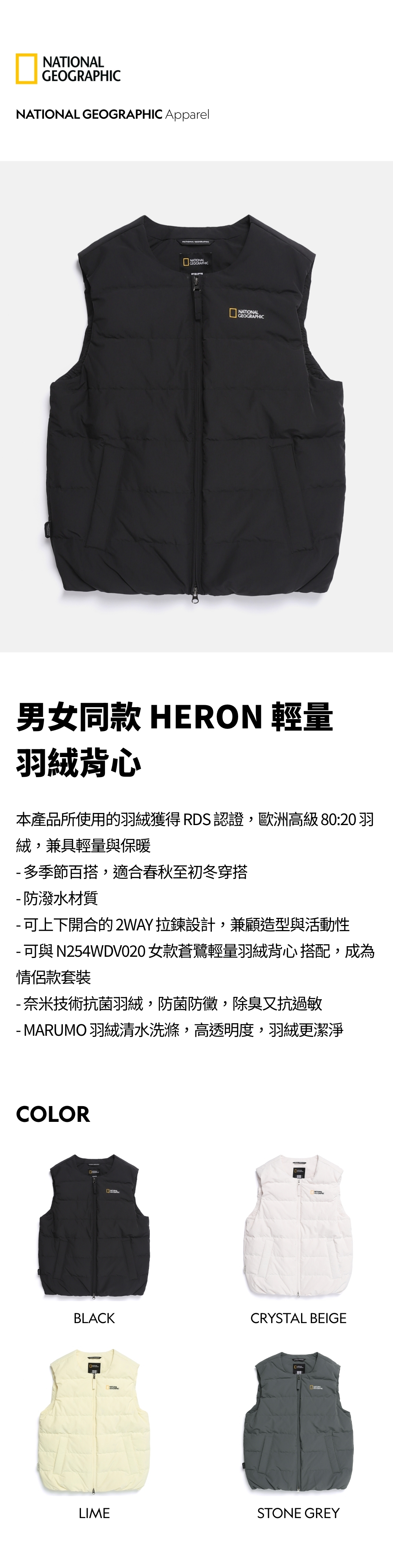 - 可與 N254WDV020 女款蒼鷺輕量羽絨背心 搭配,成為情侶款套裝
