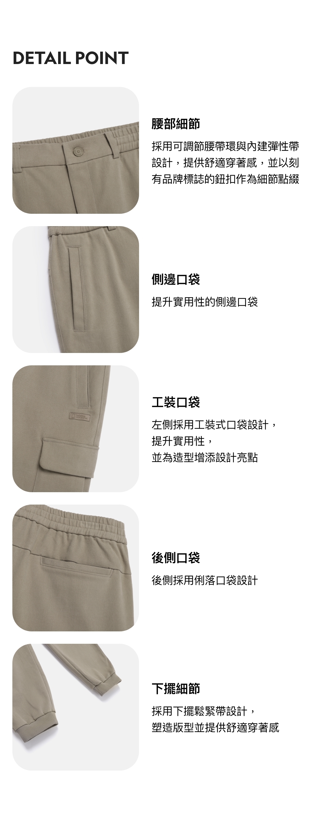 - 女性束口慢跑褲,採用刷毛棉彈性斜紋布,附多功能工裝口袋