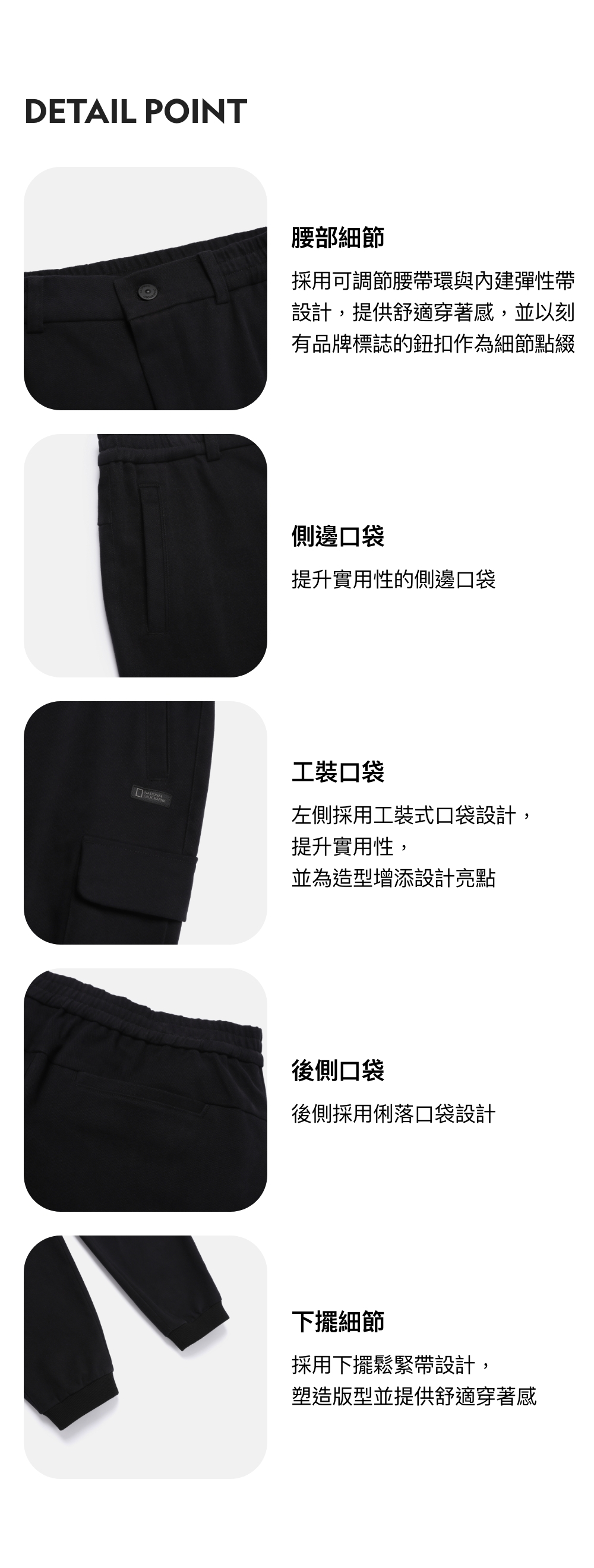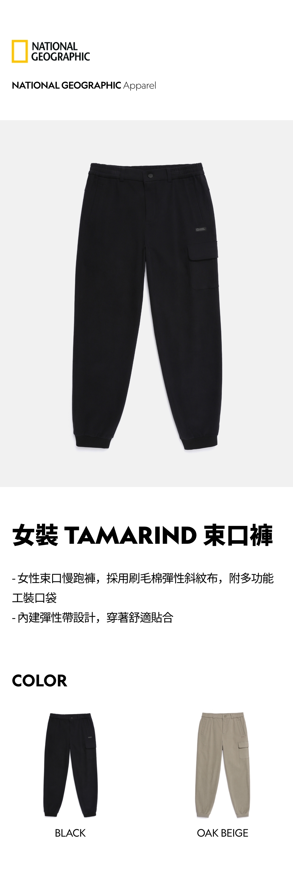 - 女性束口慢跑褲,採用刷毛棉彈性斜紋布,附多功能工裝口袋