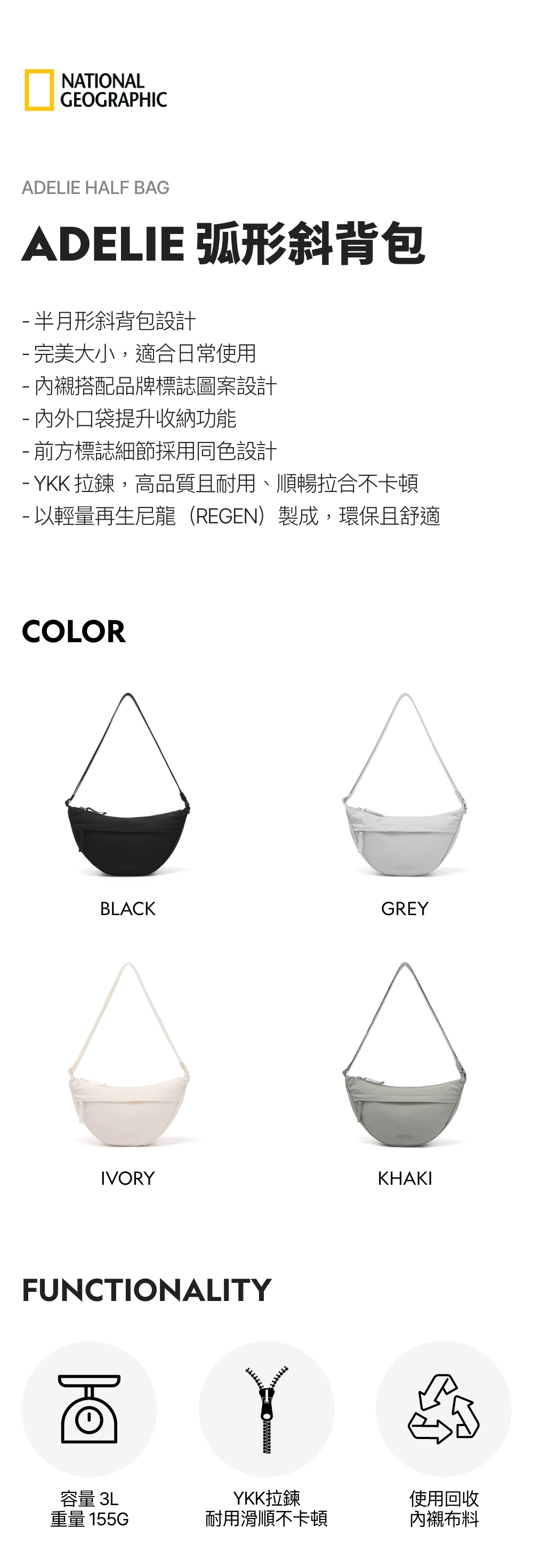 - 以輕量再生尼龍(REGEN)製成,環保且舒適