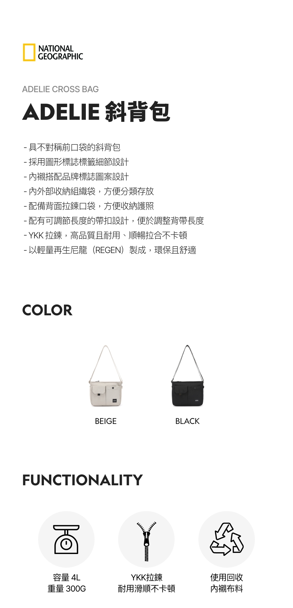 - 以輕量再生尼龍(REGEN)製成,環保且舒適