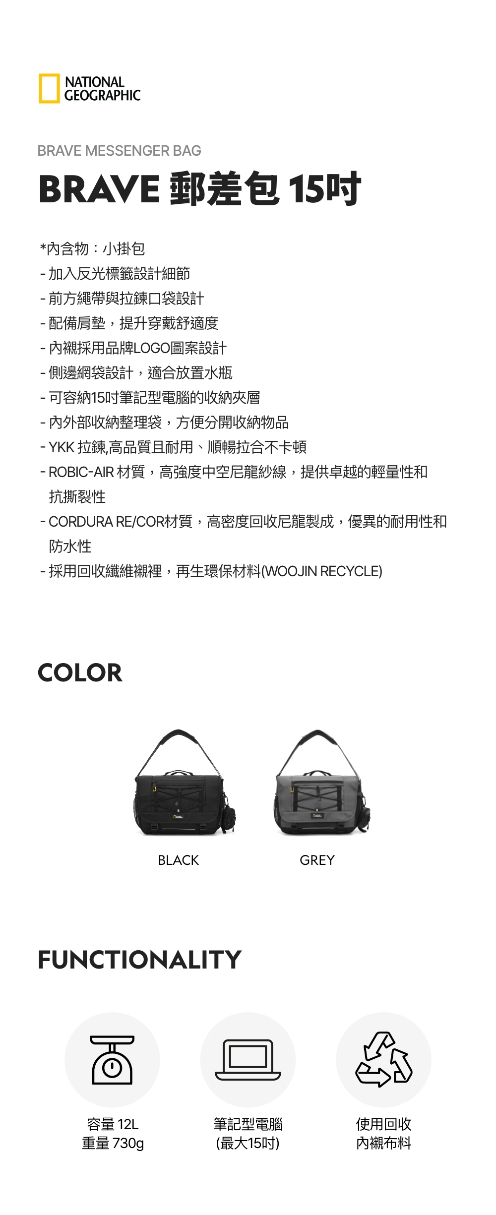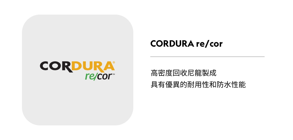 - CORDURA RE/COR材質,高密度回收尼龍製成,優異的耐用性和防水性