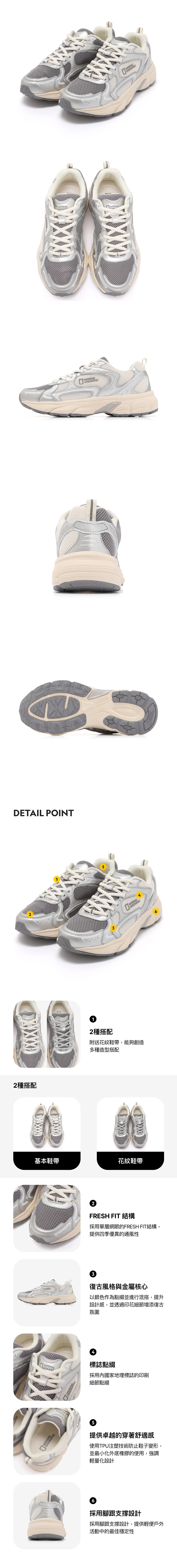 - 使用網布與合成面料製成鞋面,適合四季穿著