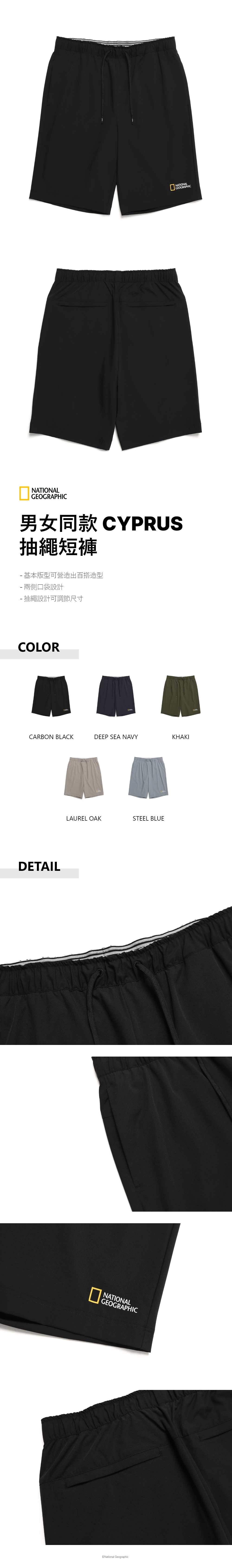 男女同款 CYPRUS 抽繩短褲 - 炭黑色
