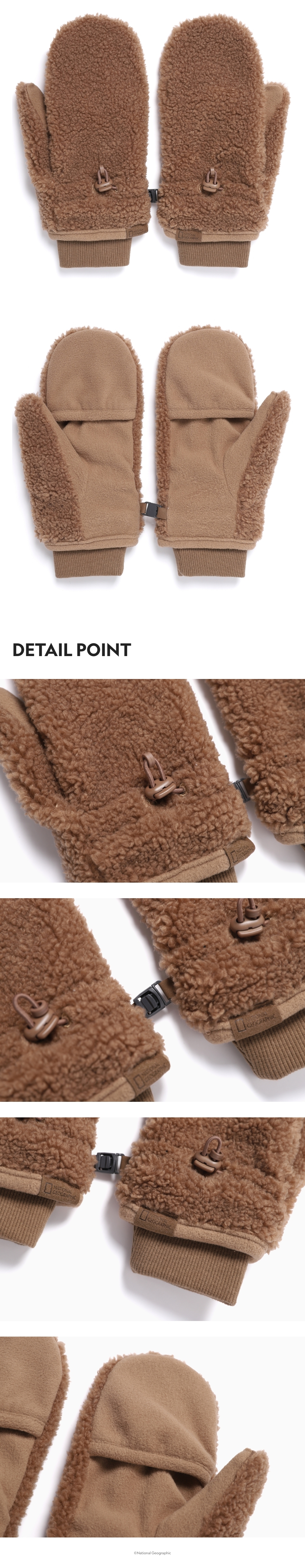 - 以柔軟觸感的羊羔絨材質製成的連指手套