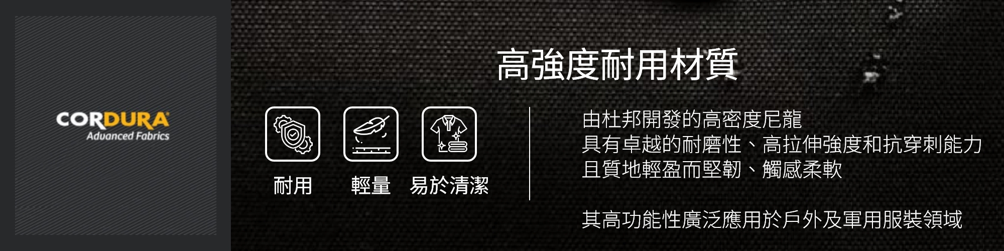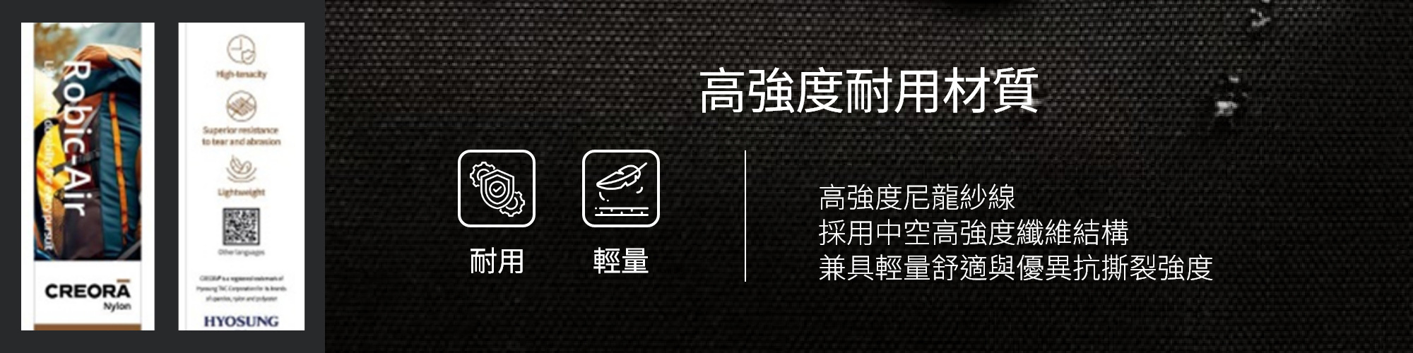 - 採用輕量化且耐磨的再生 Robic Air 織物