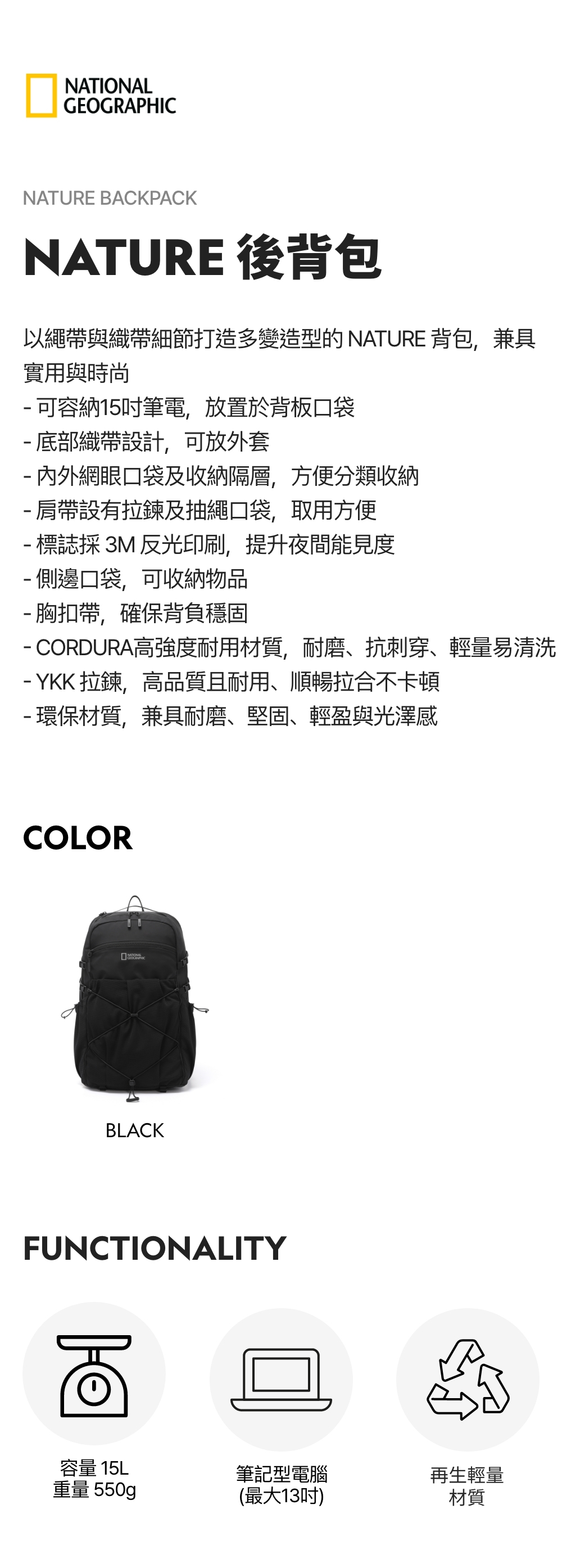 - CORDURA高強度耐用材質,耐磨、抗刺穿、輕量易清洗