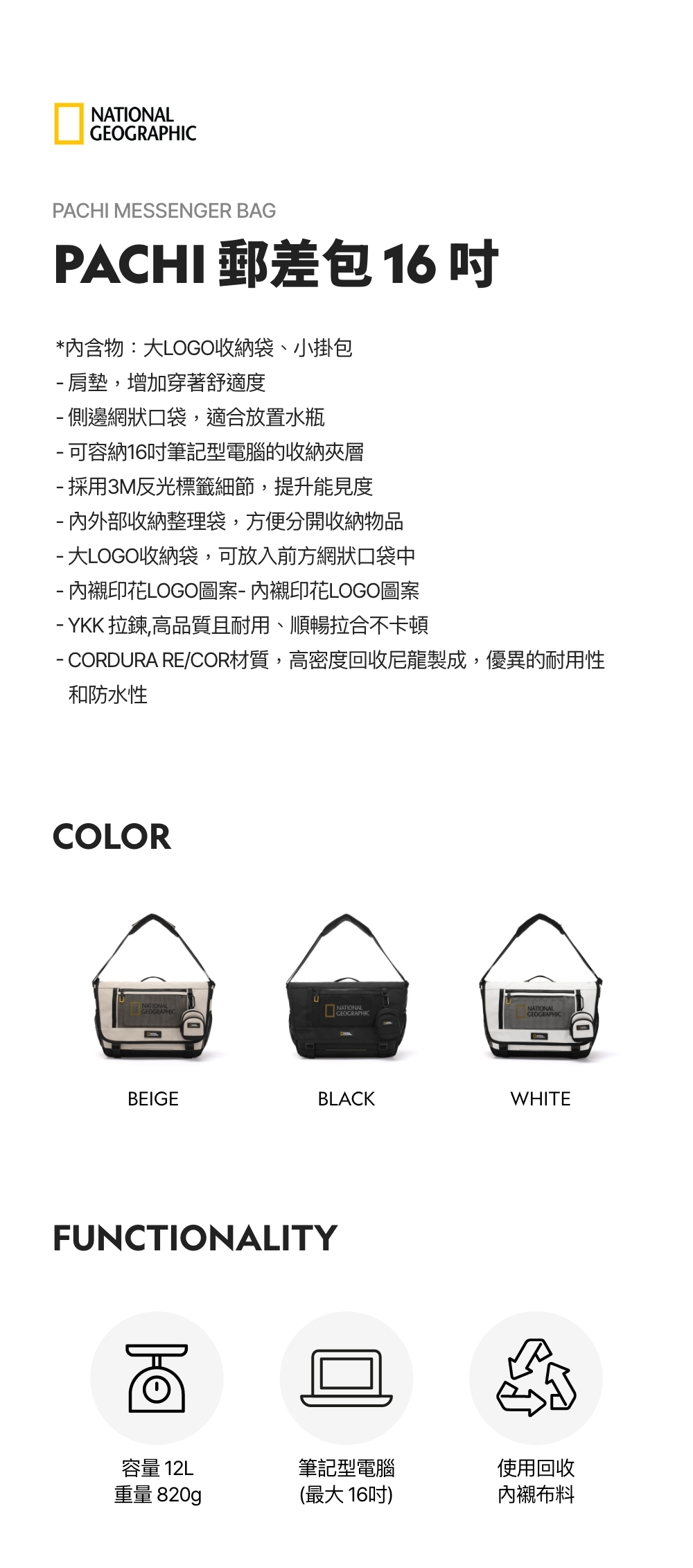 - CORDURA RE/COR材質,高密度回收尼龍製成,優異的耐用性和防水性