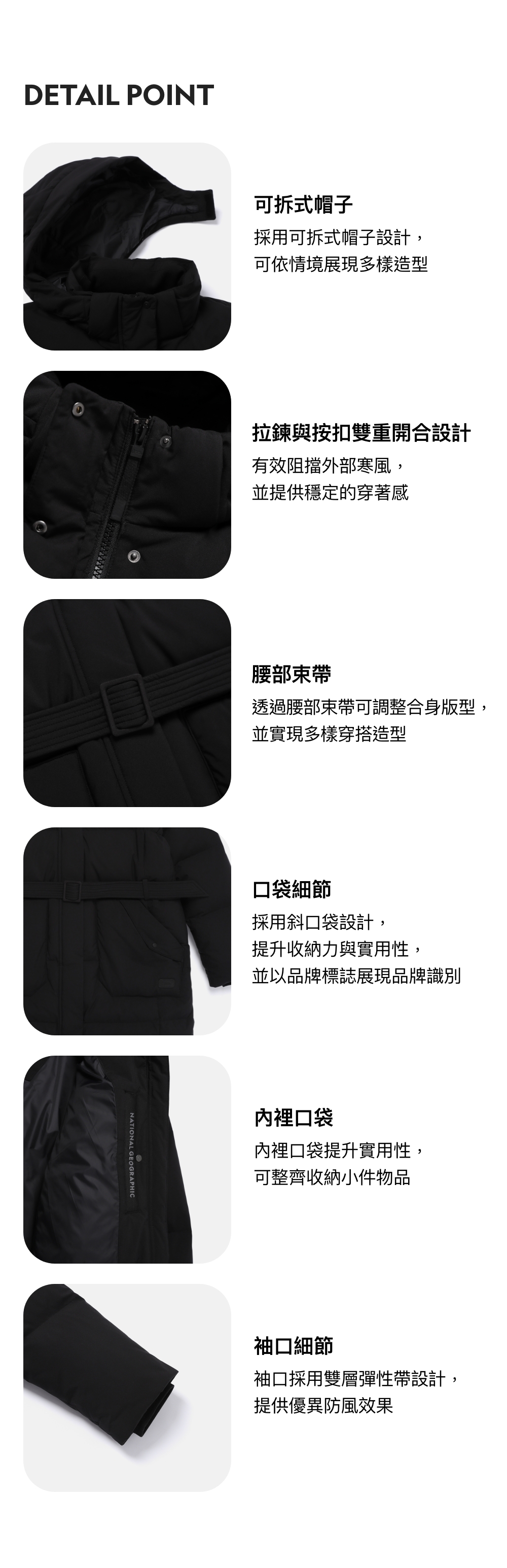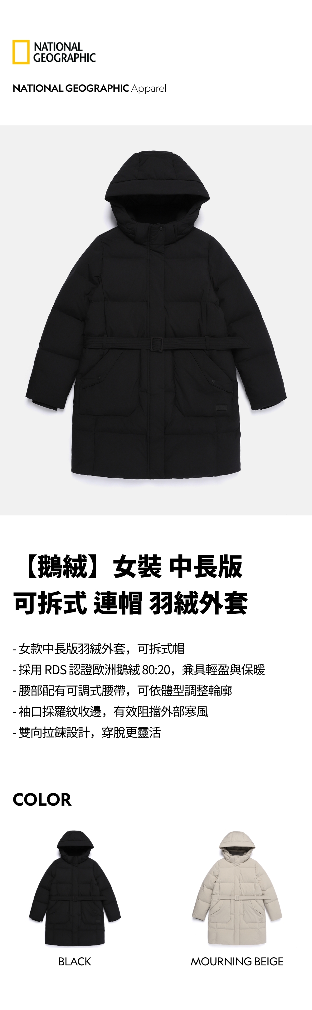 - 內填 80:20 鴨絨,兼具保暖與輕盈