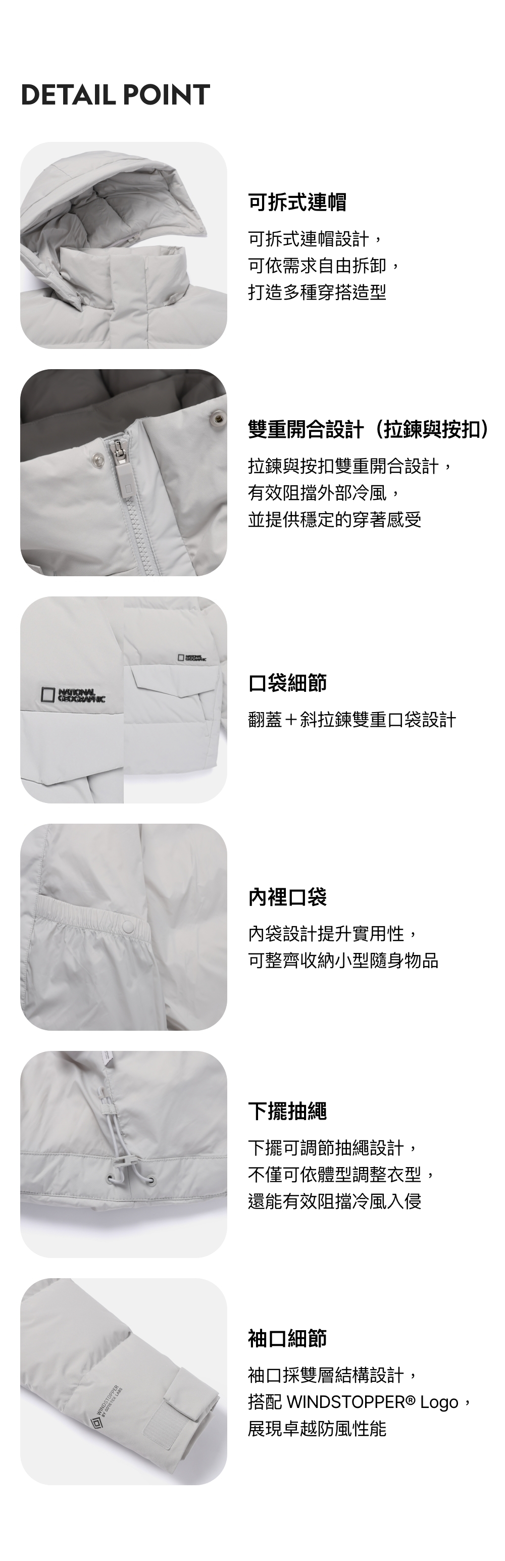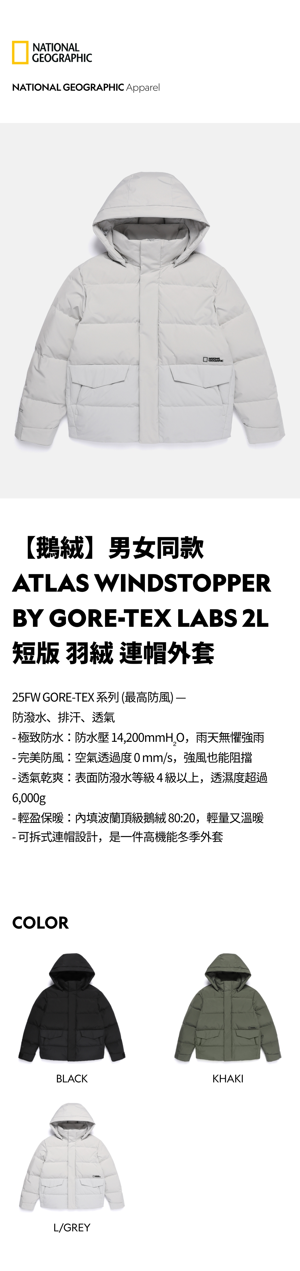 【鵝絨】男女同款 ATLAS WINDSTOPPER BY GORE-TEX LABS 2L 短版 羽絨 連帽外套 (可拆帽) - 淺灰色