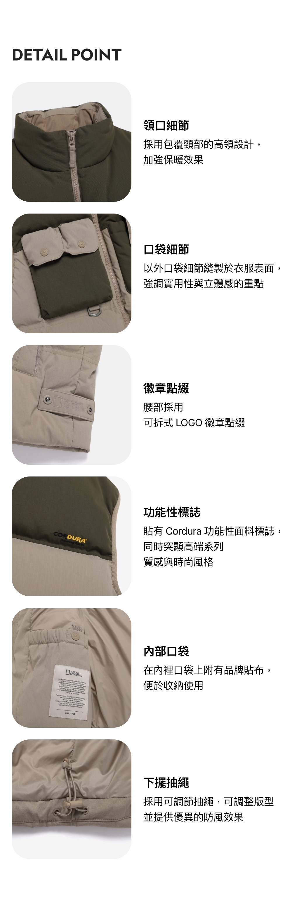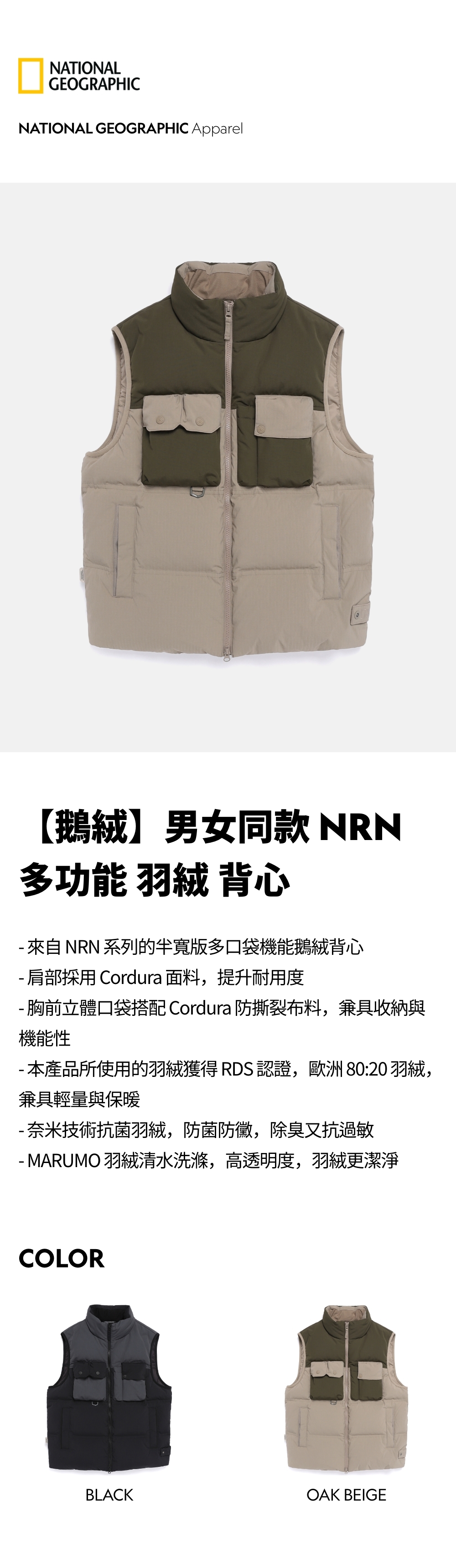 - 來自 NRN 系列的半寬版多口袋機能鵝絨背心