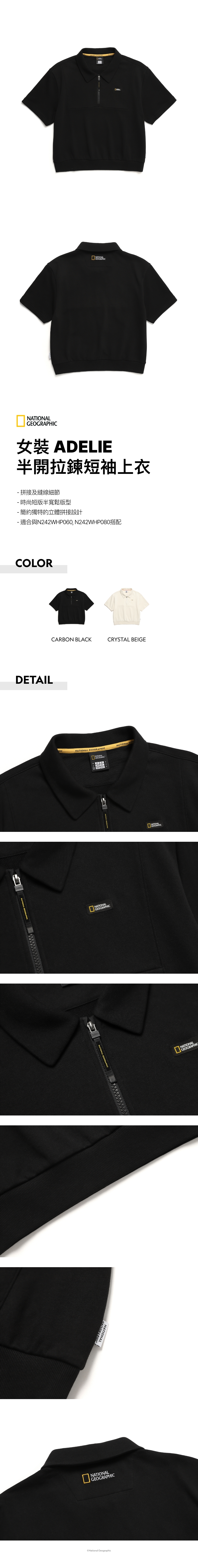 【UPF50+】女裝 ADELIE 半開拉鍊短袖上衣 - 炭黑色