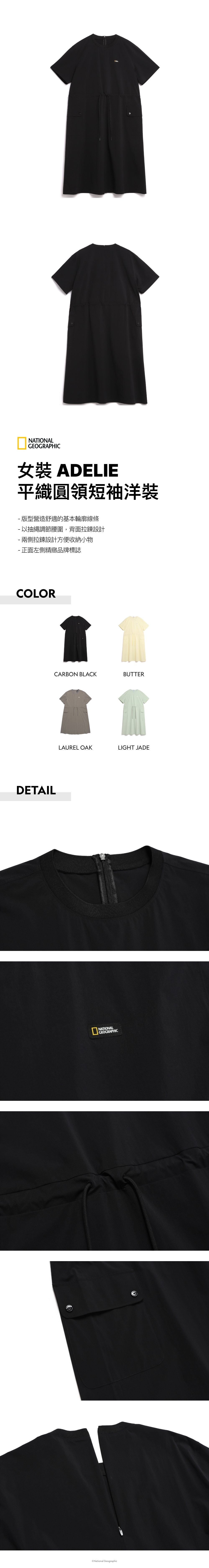 - 以抽繩調節腰圍,背面拉鍊設計