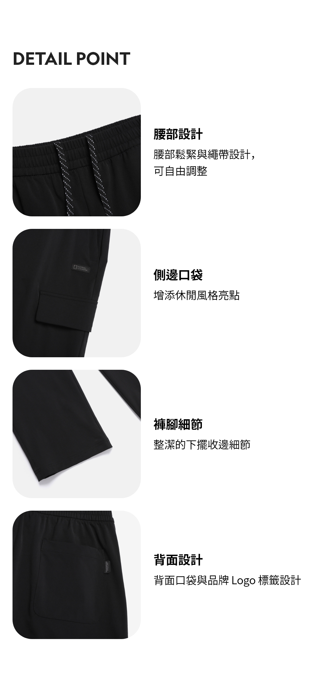 - 腰部採全腰鬆緊加抽繩設計,可自由調整尺寸