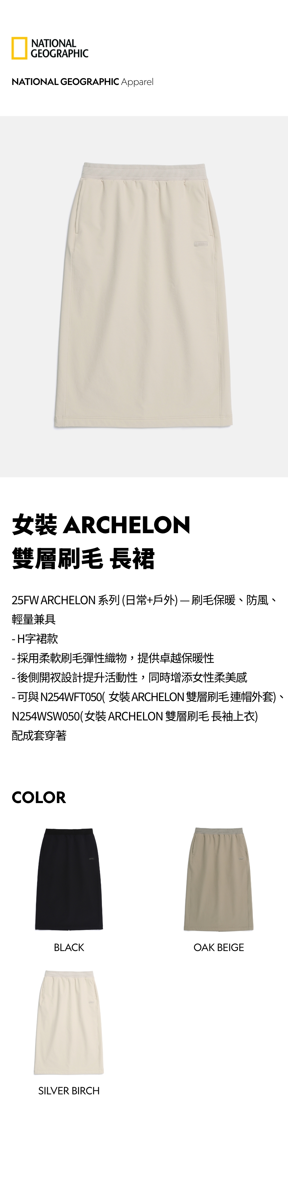 - 可與 N254WFT050( 女裝 ARCHELON 雙層刷毛 連帽外套)、N254WSW050( 女裝 ARCHELON 雙層刷毛 長袖上衣) 搭配成套穿著