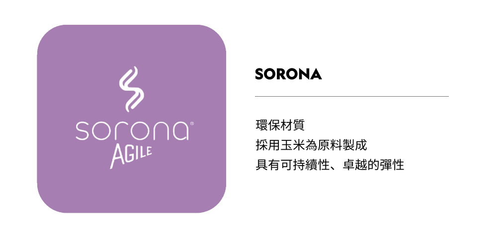 - SORONA 環保材質,彈性佳且回復力強,舒適好穿