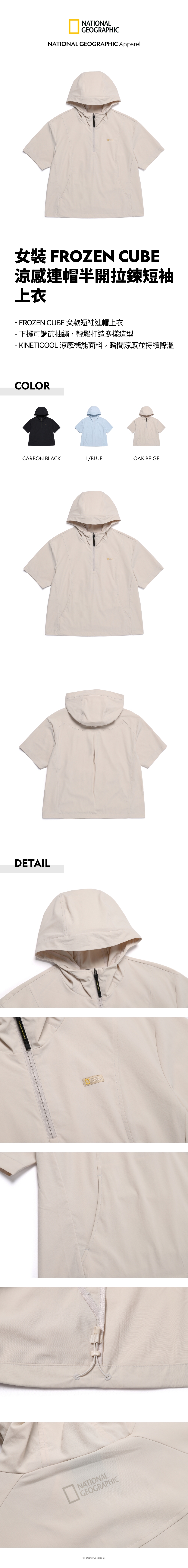 女裝 FROZEN CUBE 涼感 連帽半開拉鍊 短袖上衣 - 米色
