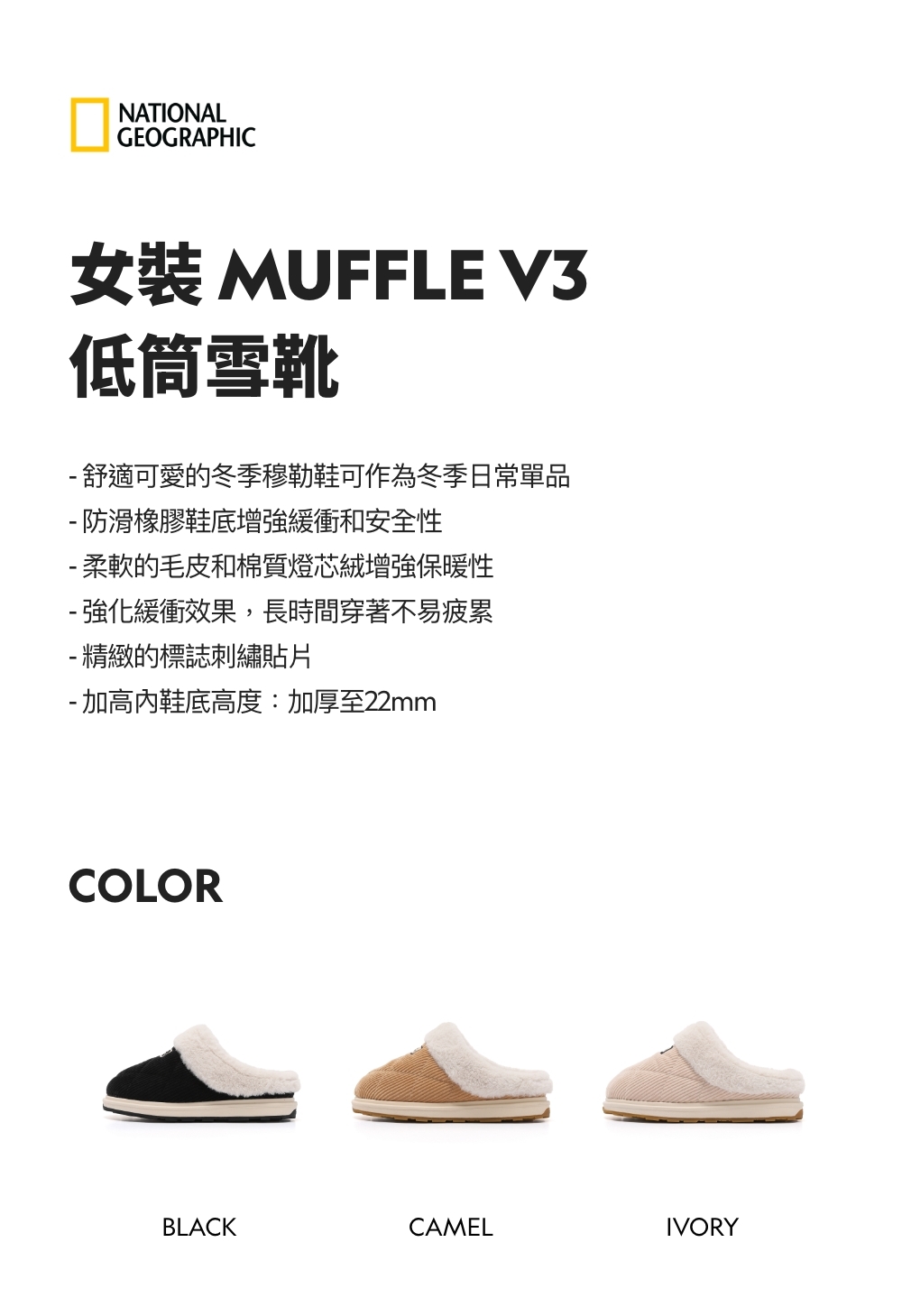 - 柔軟的毛皮和棉質燈芯絨增強保暖性