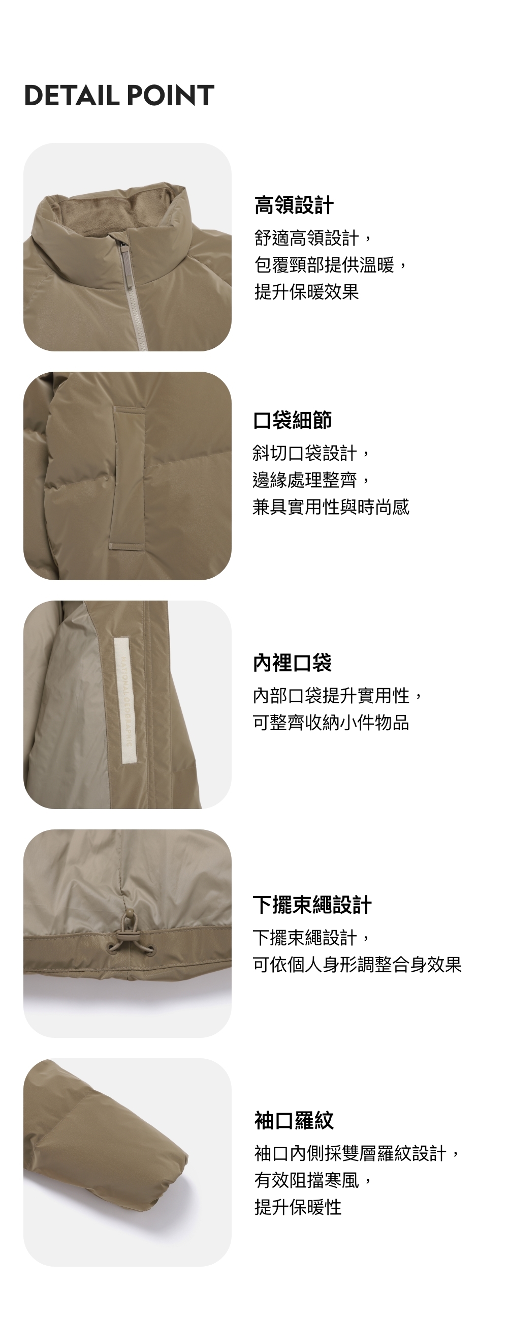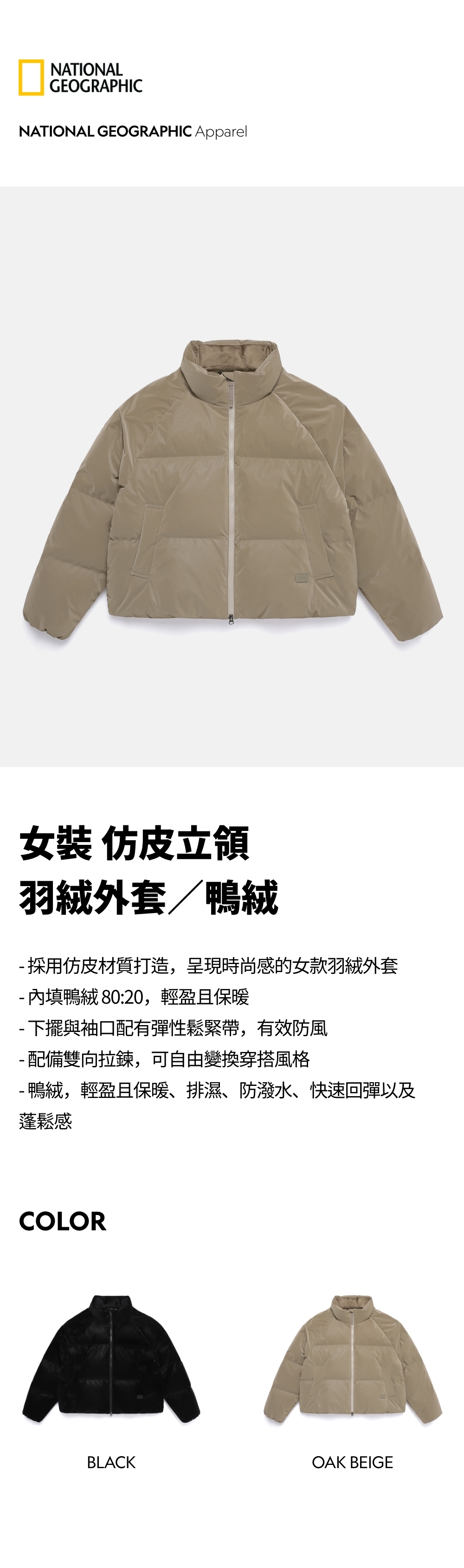 ┃RDS鴨絨 80:20┃蓬鬆係數 550-600┃商品重量 597G- 採用仿皮材質打造,呈現時尚感的女款羽絨外套