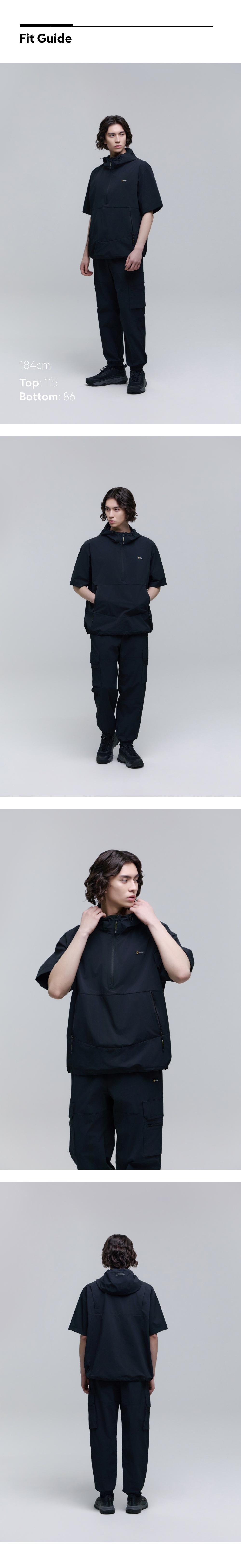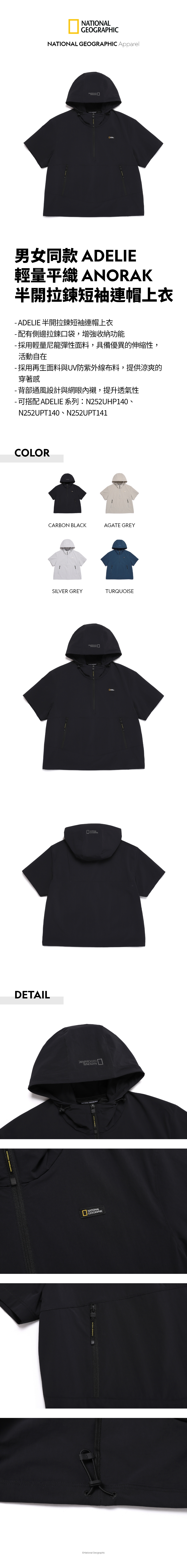 【UPF50+】男女同款 ADELIE 輕量平織 ANORAK 半開拉鍊短袖連帽上衣 - 炭黑色