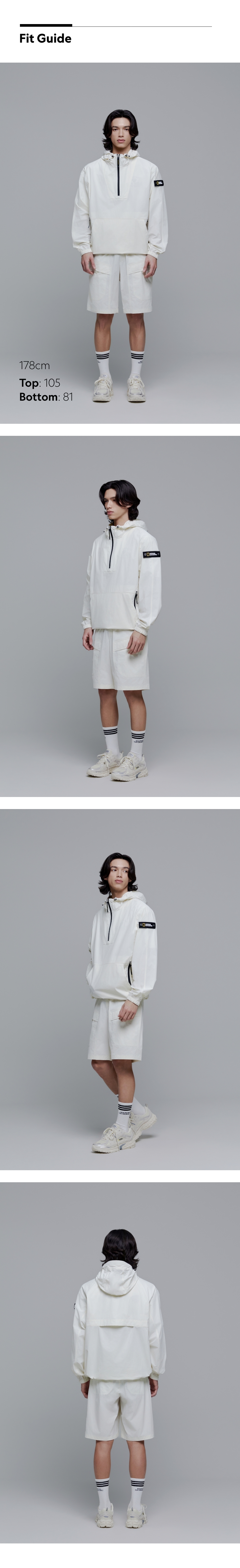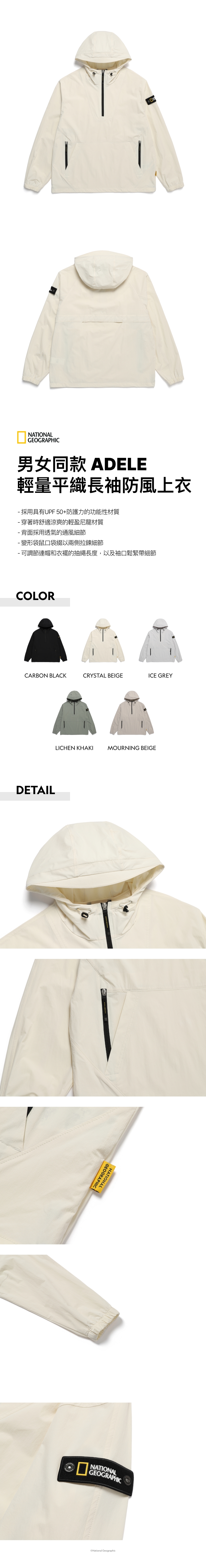 - 可調節連帽和衣襬的抽繩長度,以及袖口鬆緊帶細節