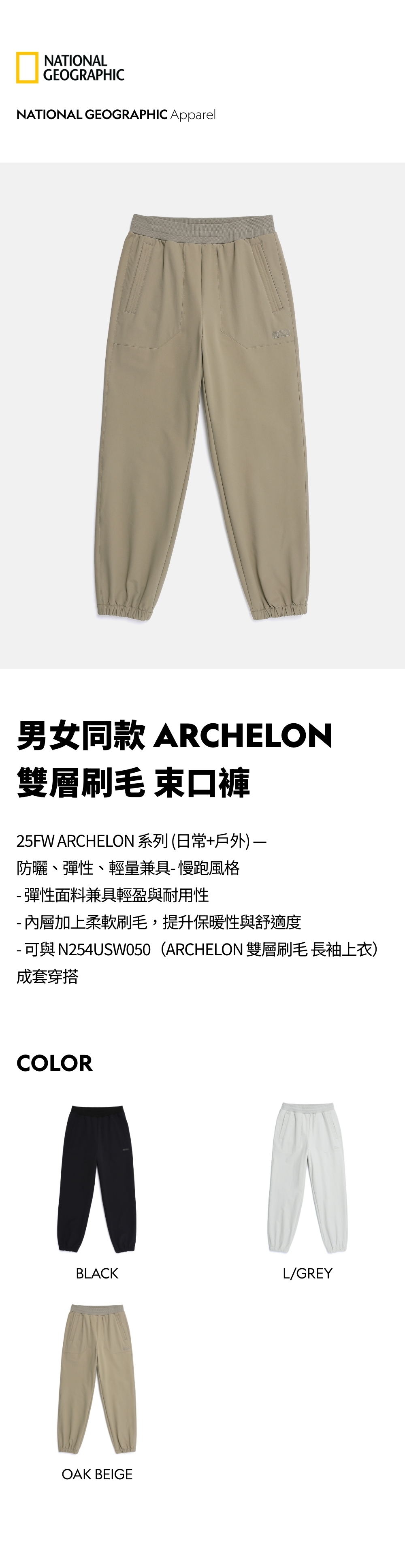- 可與 N254USW050(ARCHELON 雙層刷毛 長袖上衣)成套穿搭