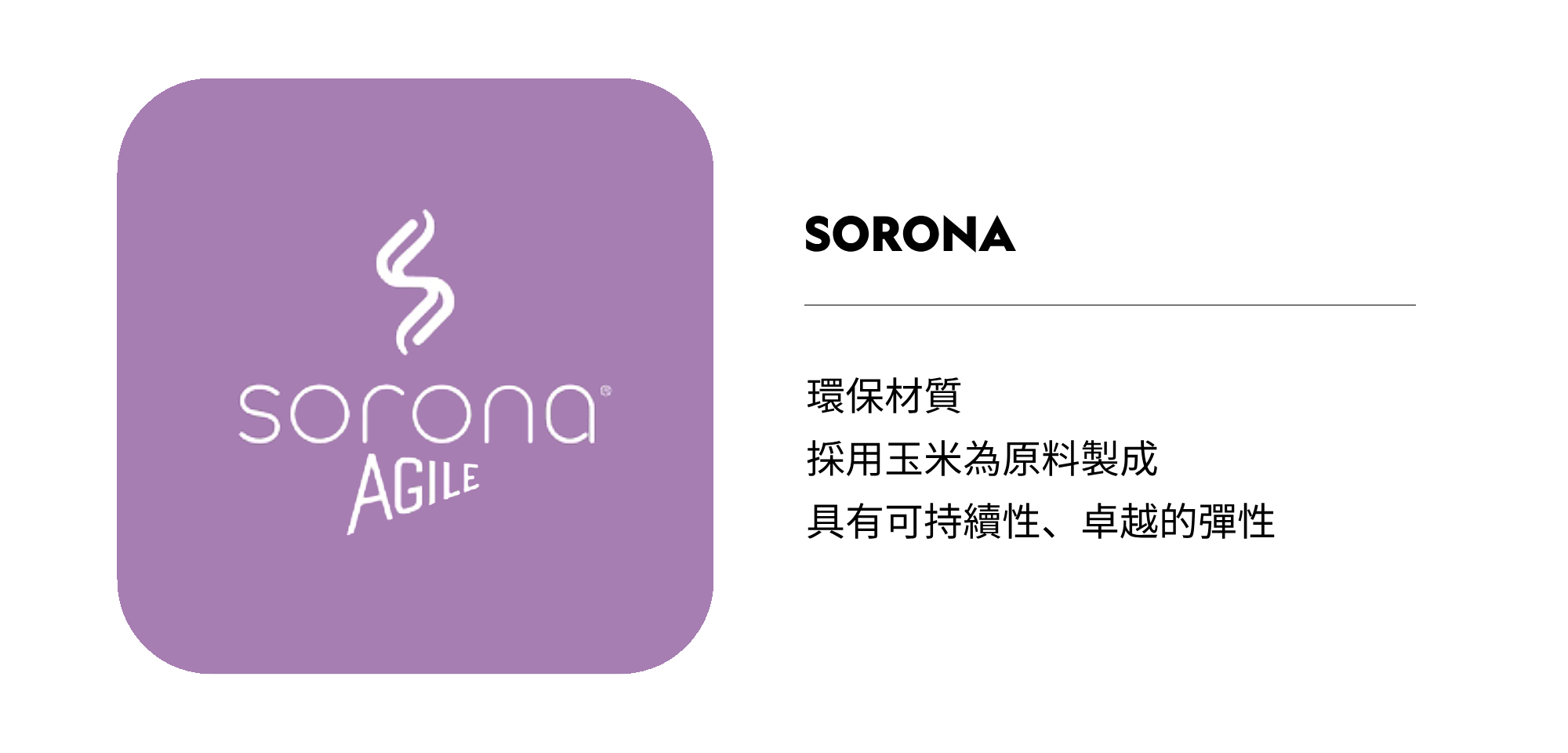 - SORONA 環保材質,具有可持續性、卓越的彈性