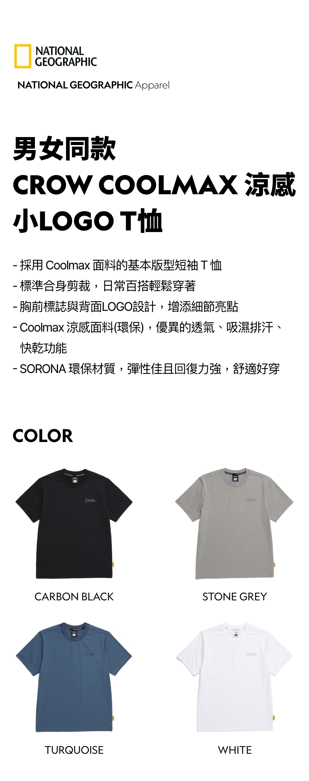 - Coolmax 涼感面料(環保),優異的透氣、吸濕排汗、快乾功能