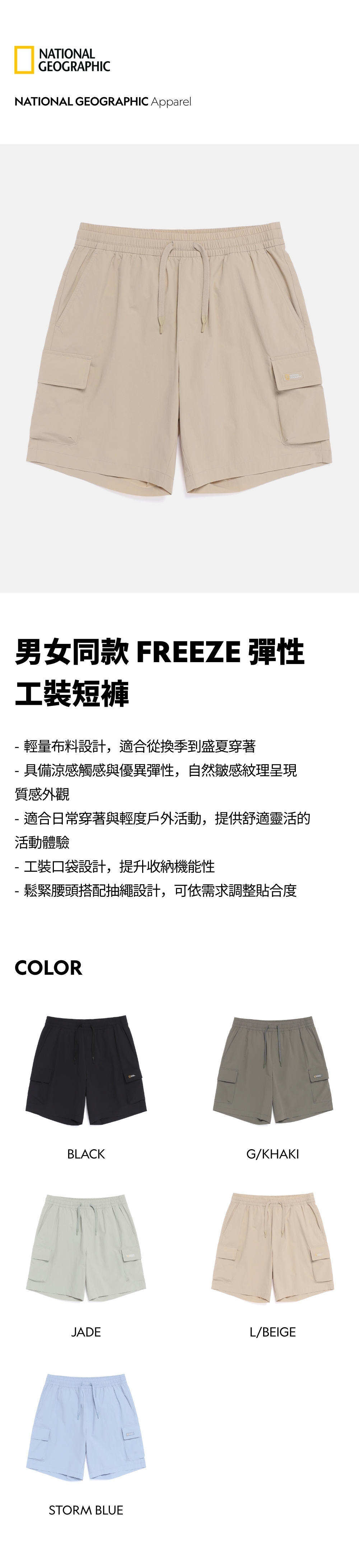 男女同款 FREEZE 彈性涼感工裝短褲 - 淺米色