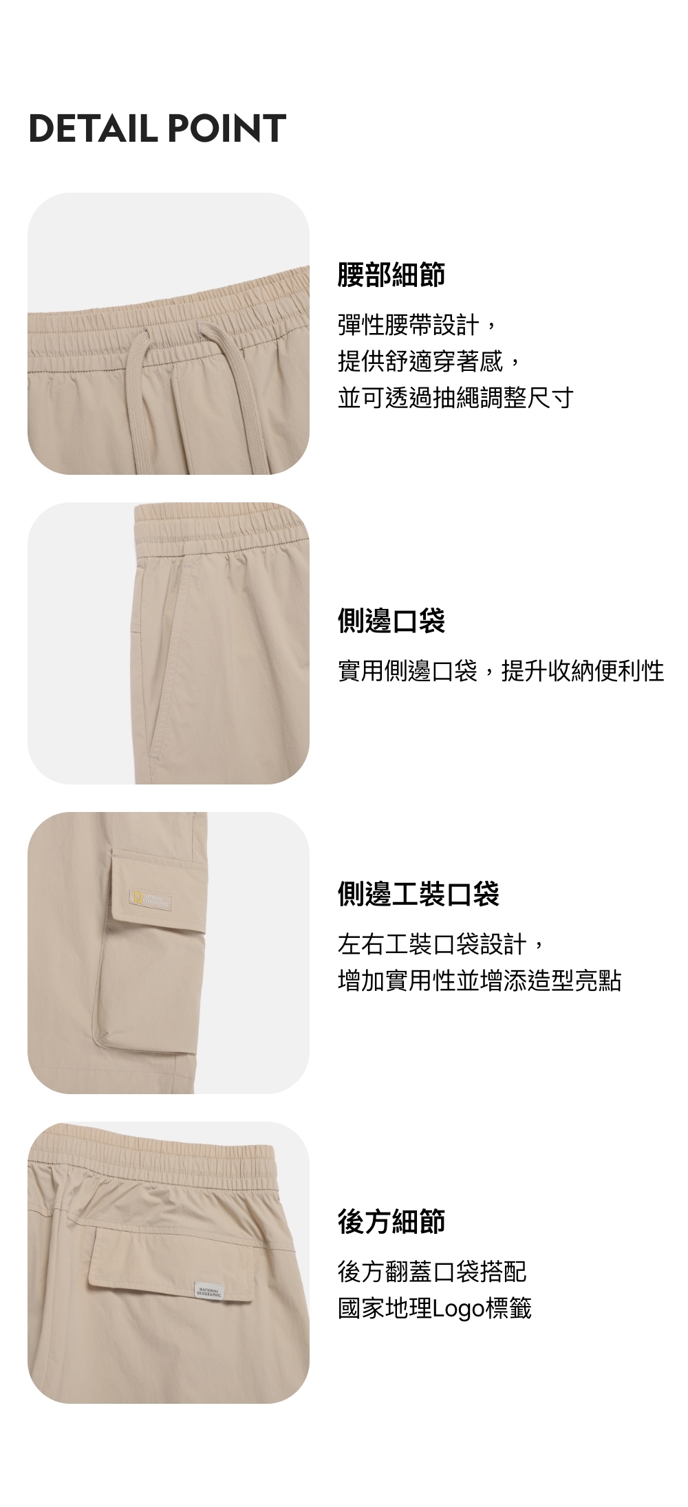 -  鬆緊腰頭搭配抽繩設計,可依需求調整貼合度