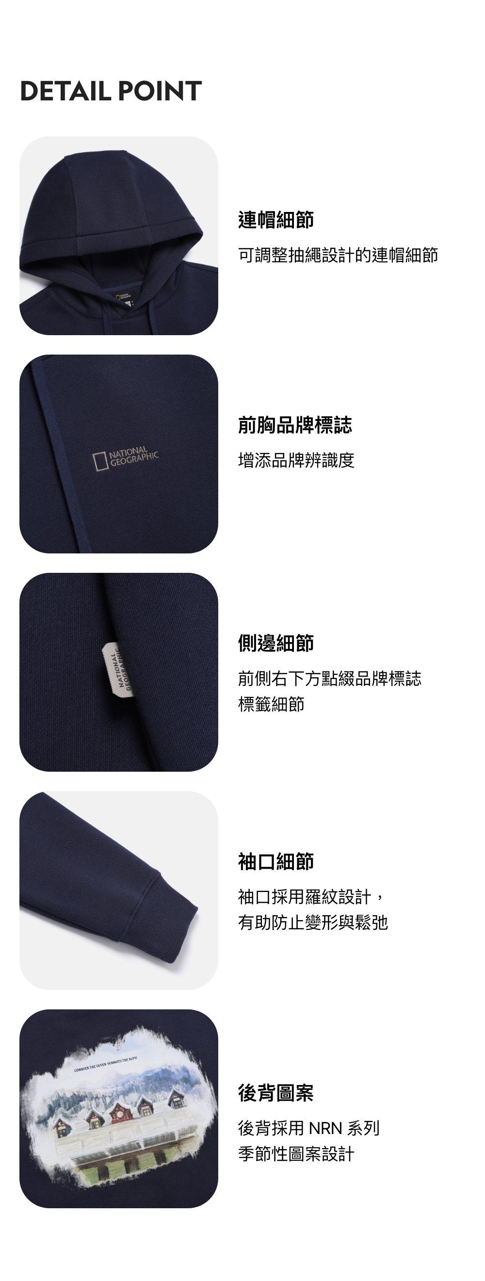 - 採用厚磅面料與抓絨內裡,修飾體型並提供卓越保暖性