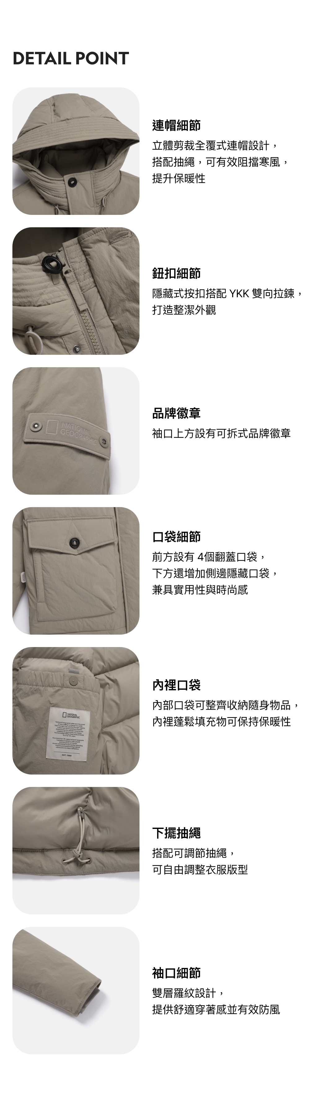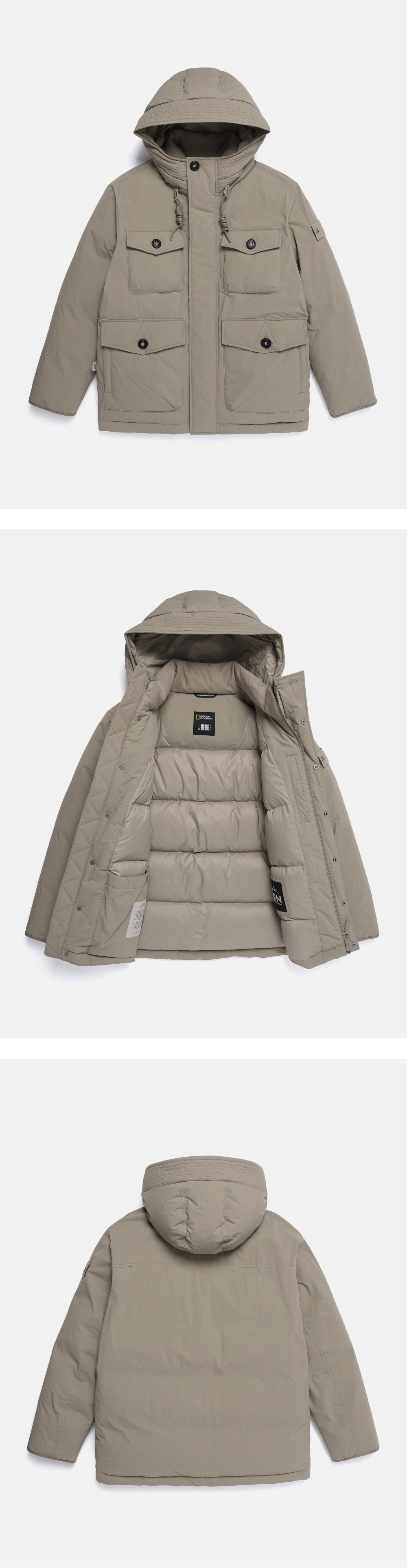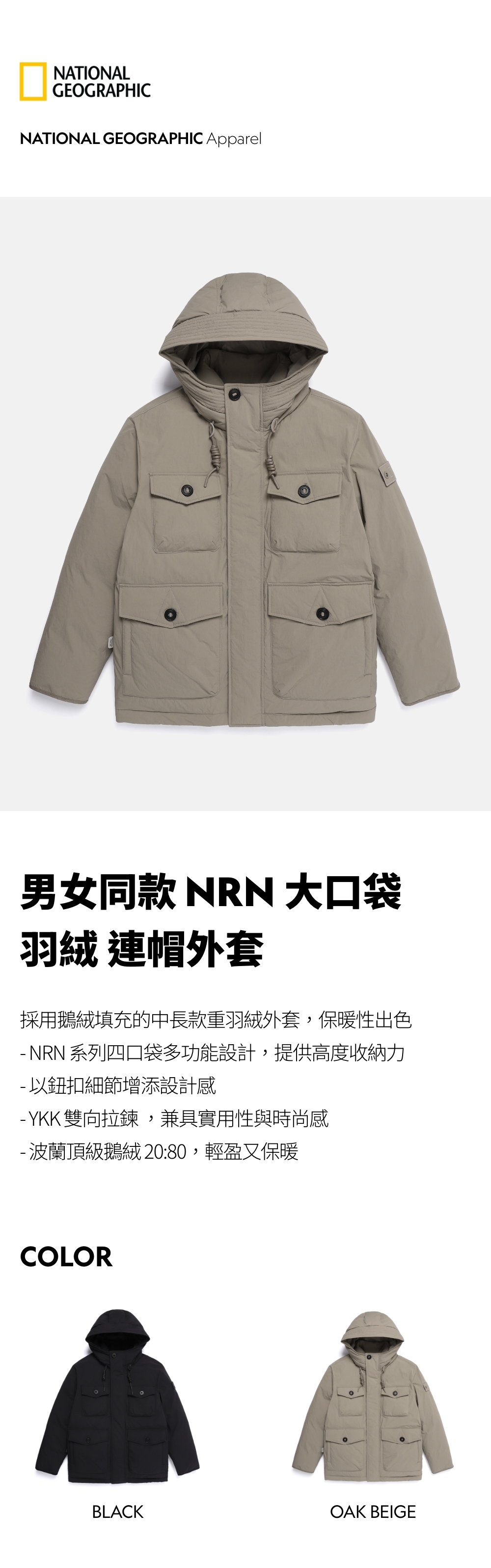 男女同款 NRN 大口袋 羽絨 連帽外套 - 米色