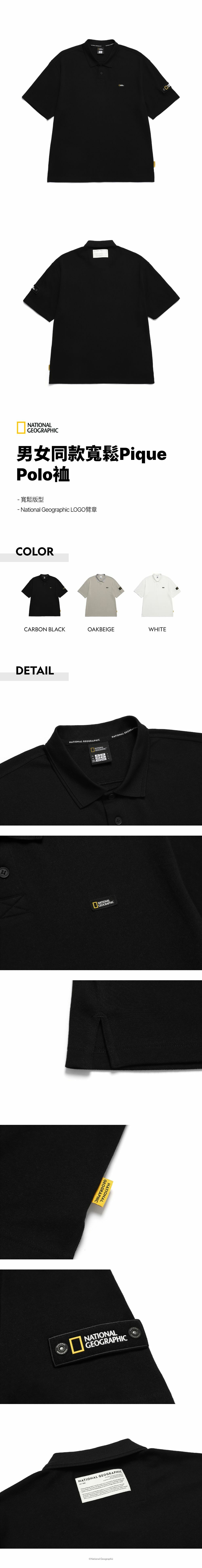 男女同款 PIQUE 短袖立領上衣 - 炭黑色