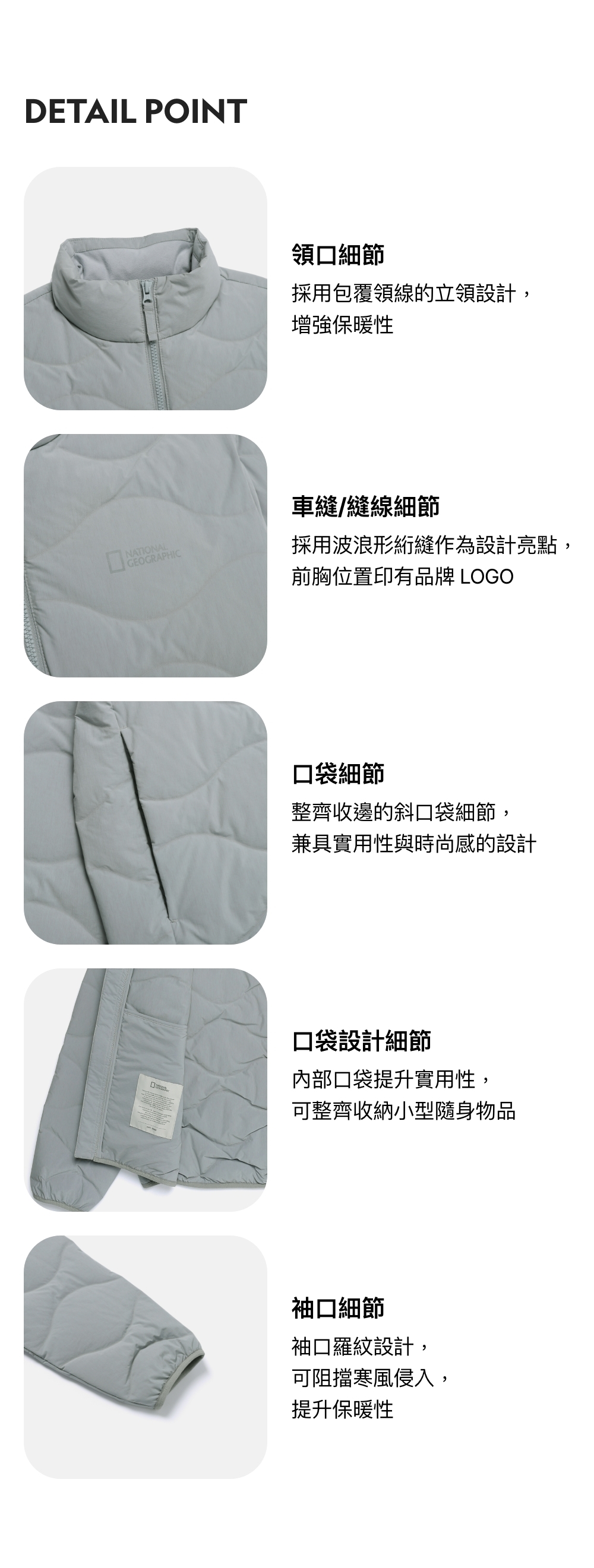 - 採用 YKK 雙向拉鍊,提供舒適的版型與活動性