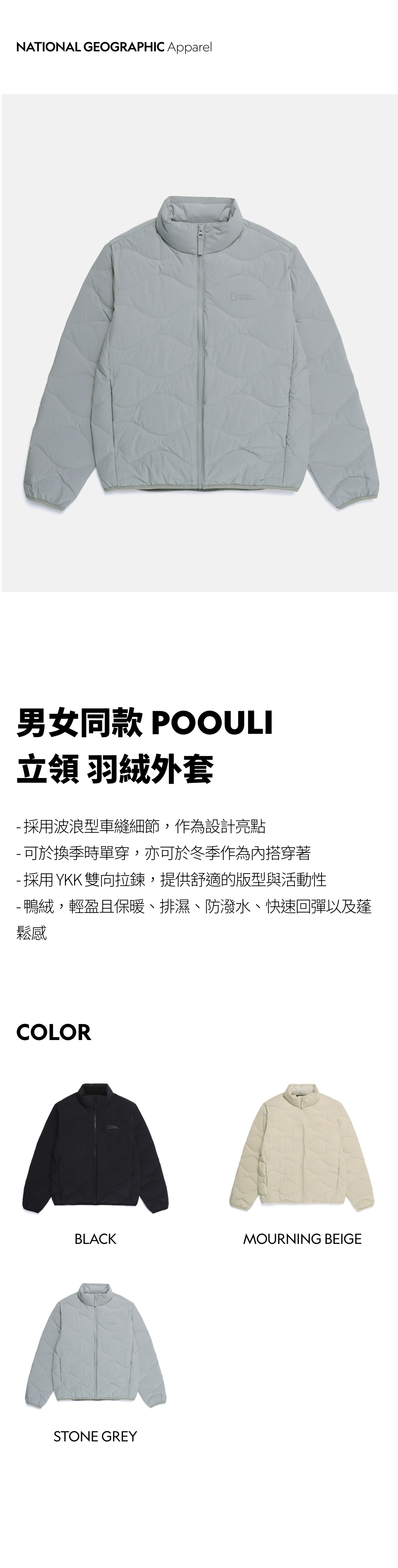 男女同款 POOULI 立領 羽絨外套/鴨絨 - 灰色