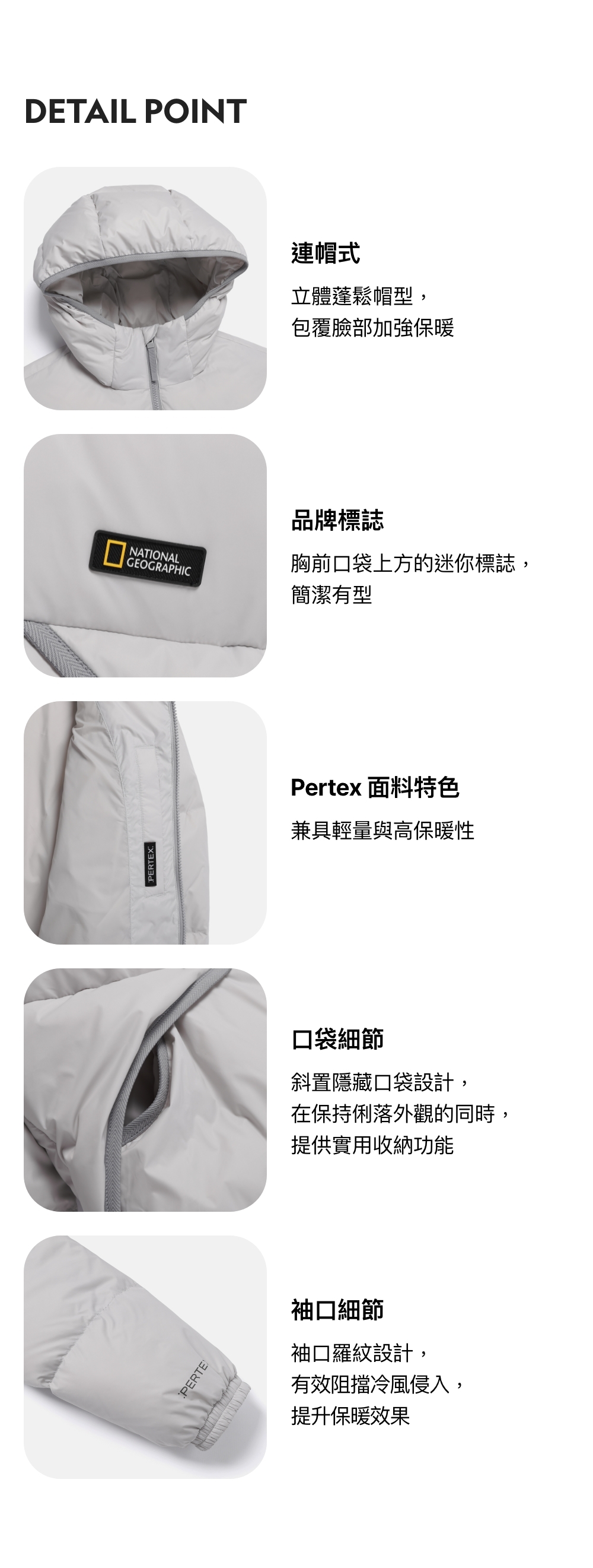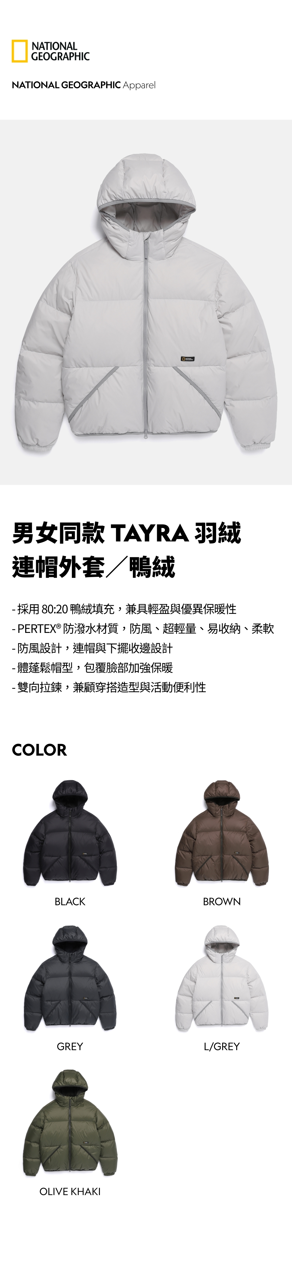 - 採用 80:20 鴨絨填充,兼具輕盈與優異保暖性