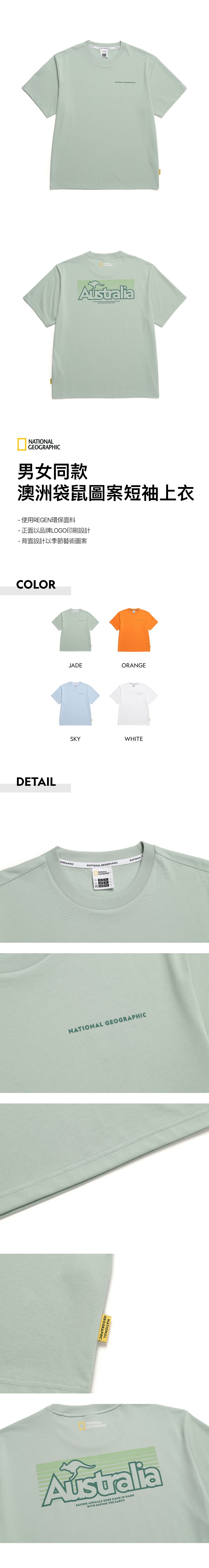 男女同款 澳洲袋鼠圖案短袖上衣 - 薄荷綠色