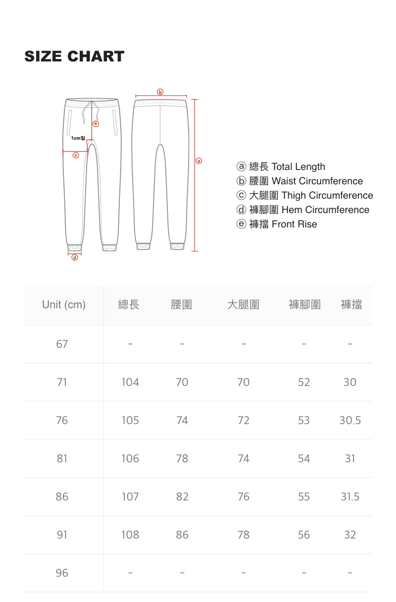 - 褲腳抽繩設計,可調整為慢跑褲版型