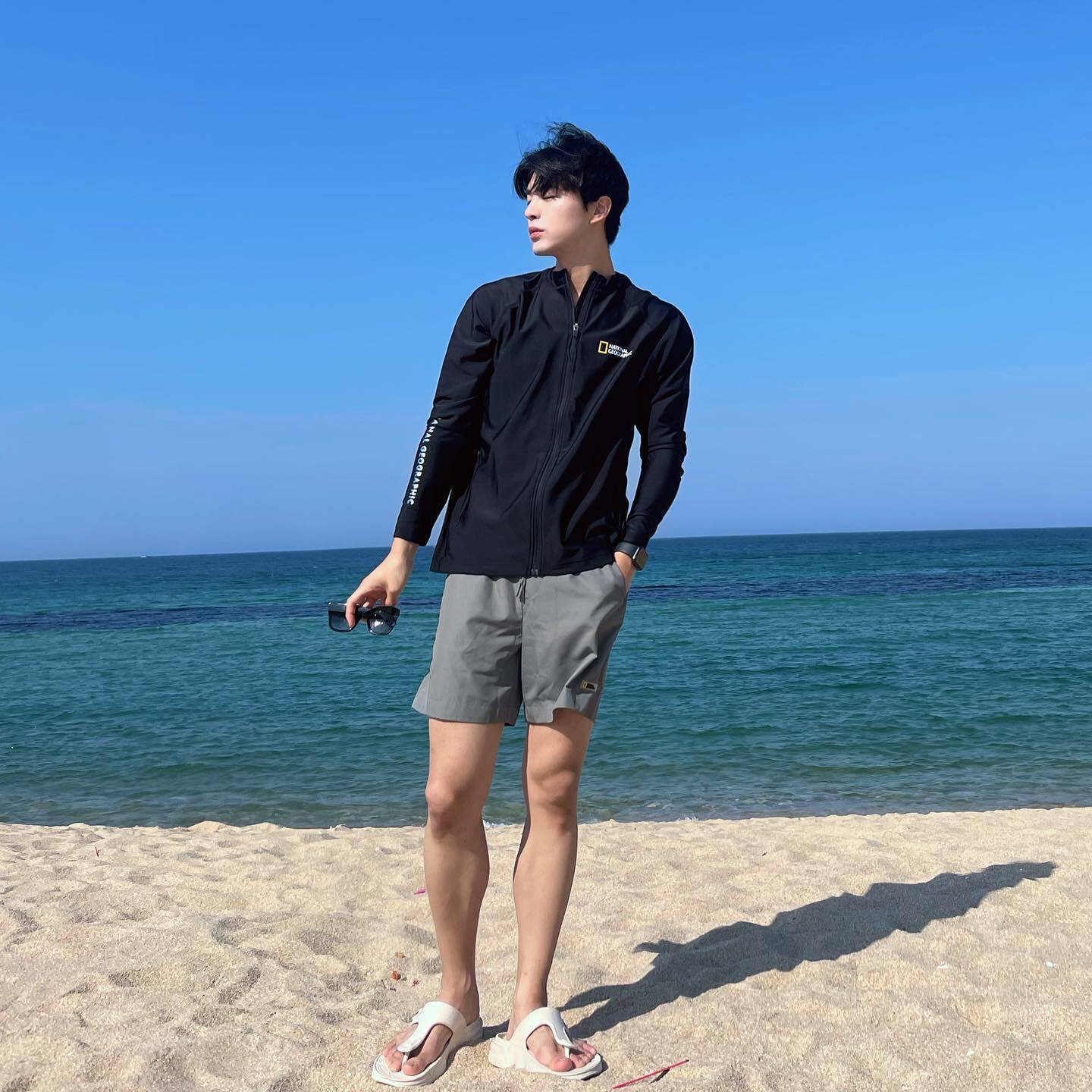 - 男裝夏日概念圖形拉鍊防曬衣