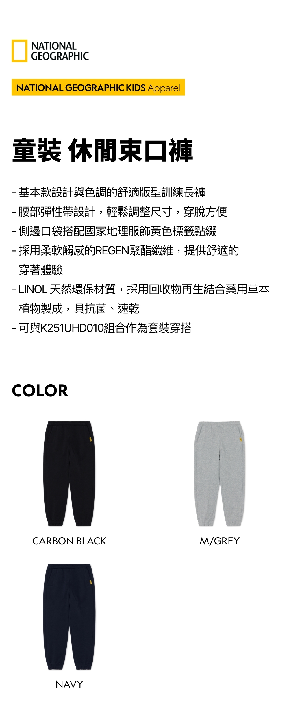 - 側邊口袋搭配國家地理服飾黃色標籤點綴