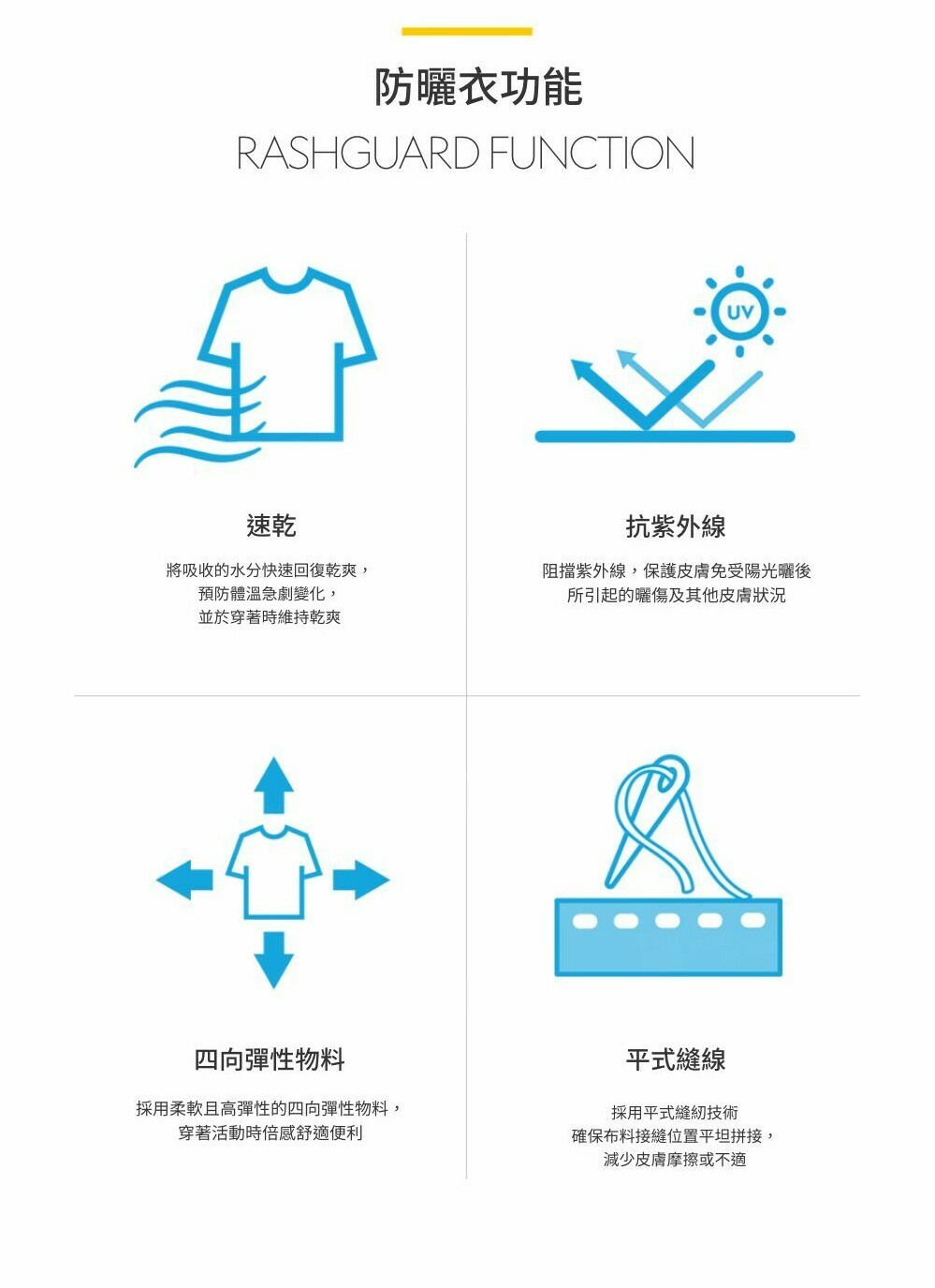 - 具有優異的彈性和防紫外線功能(UPF50+)