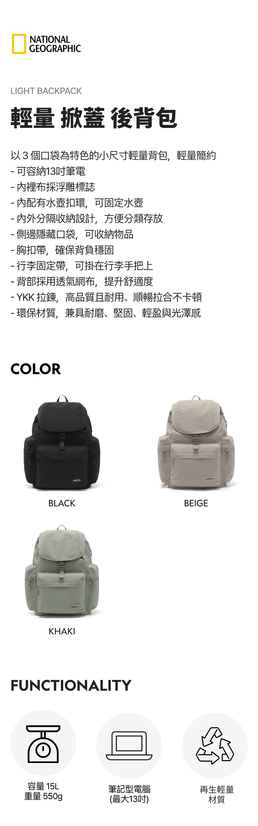 以 3 個口袋為特色的小尺寸輕量背包,輕量簡約