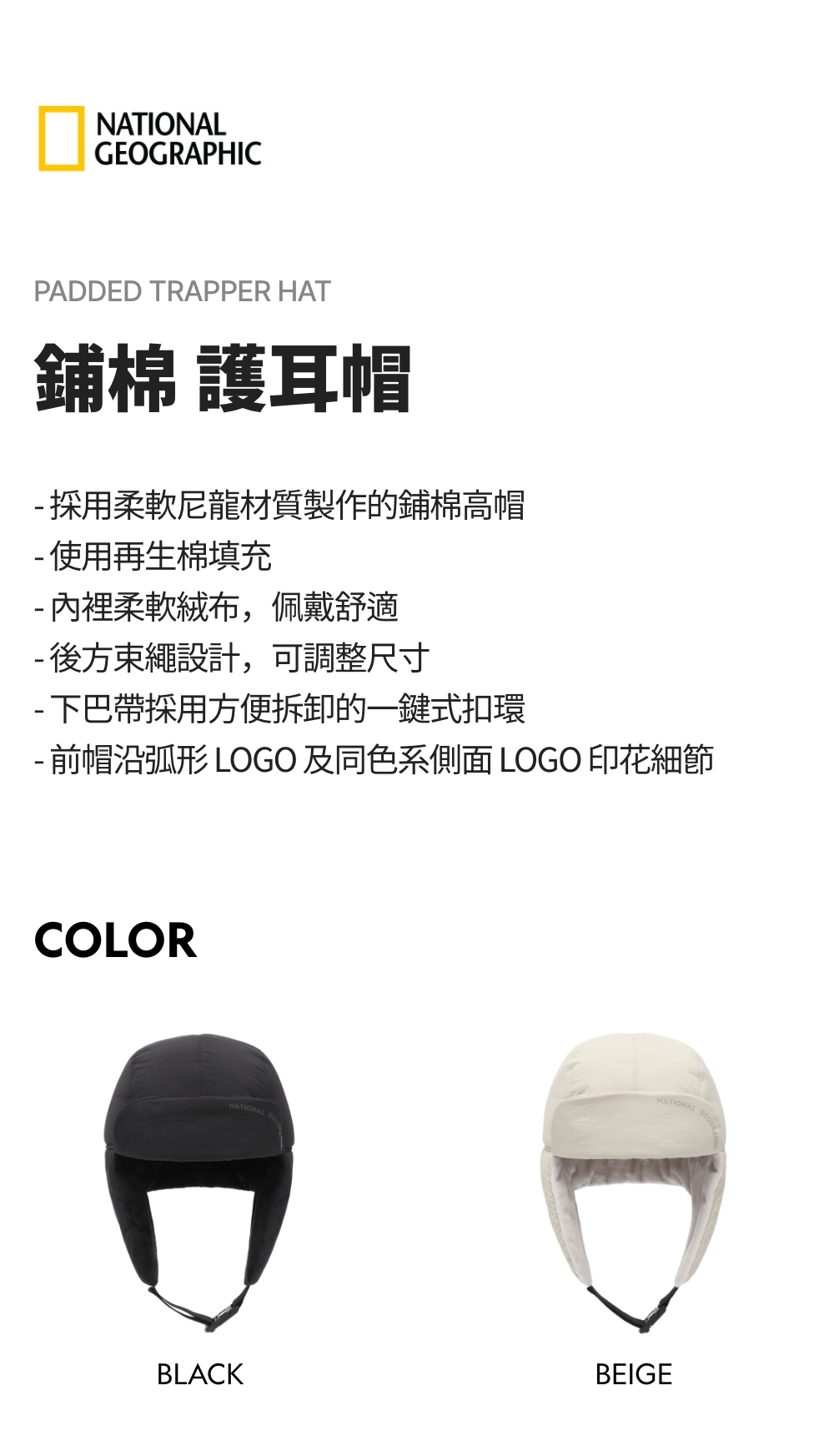 - 採用柔軟尼龍材質製作的鋪棉高帽