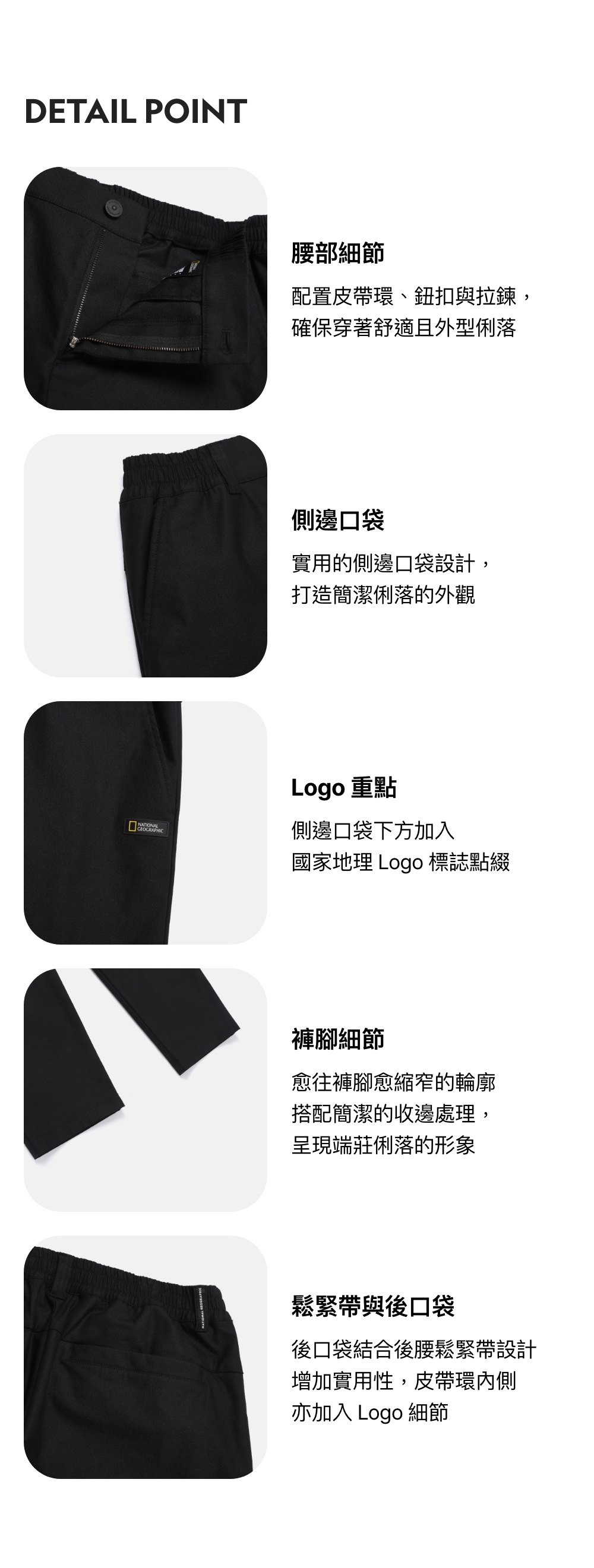- 採用錐形輪廓,大腿處寬鬆、愈往褲腳愈縮窄